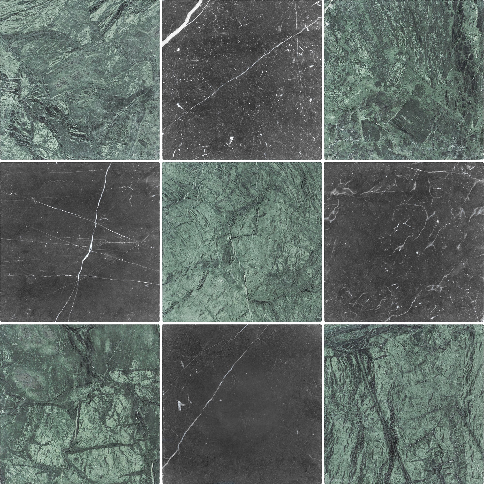 Notte Verde & Black Marble 10" Checkerboard Tumbled