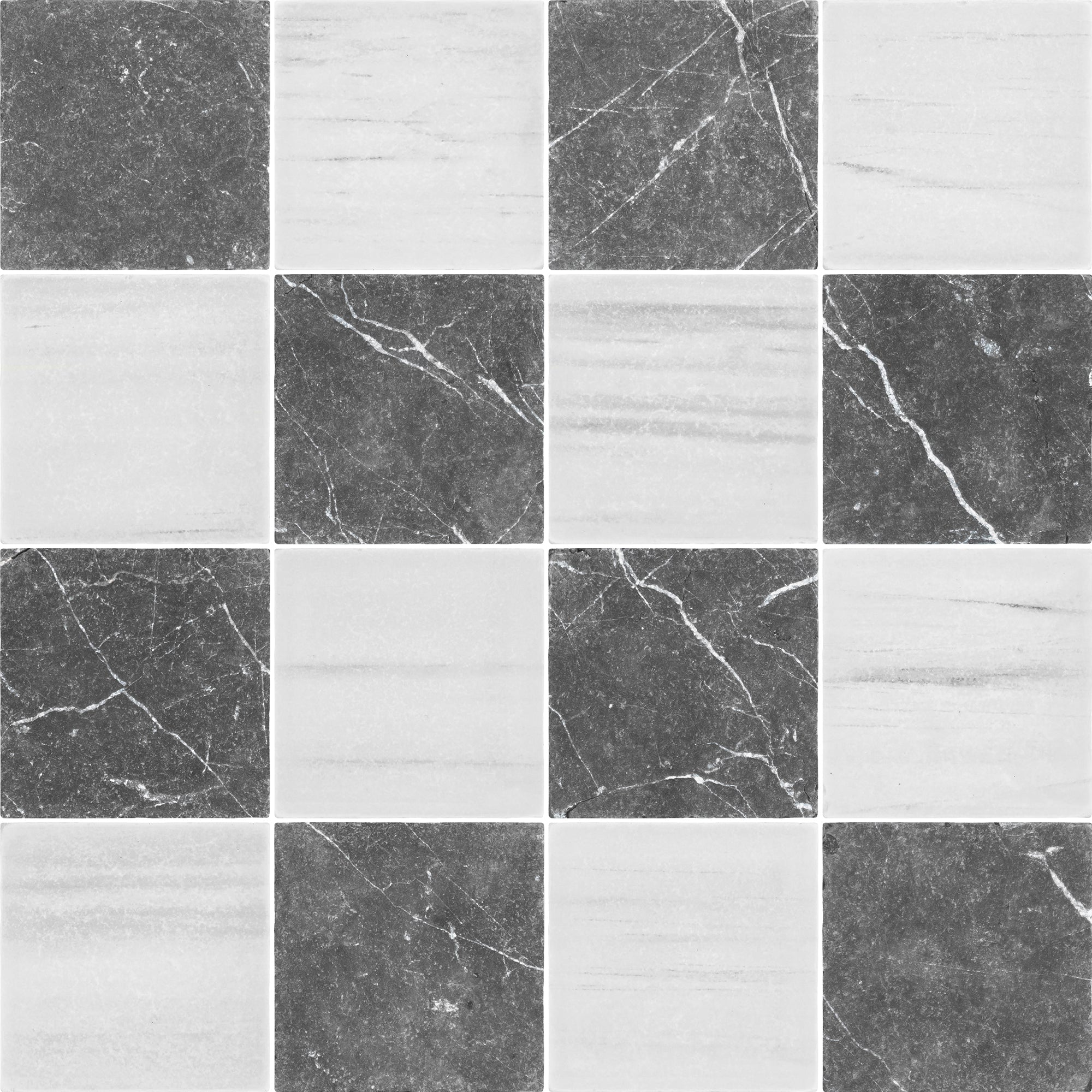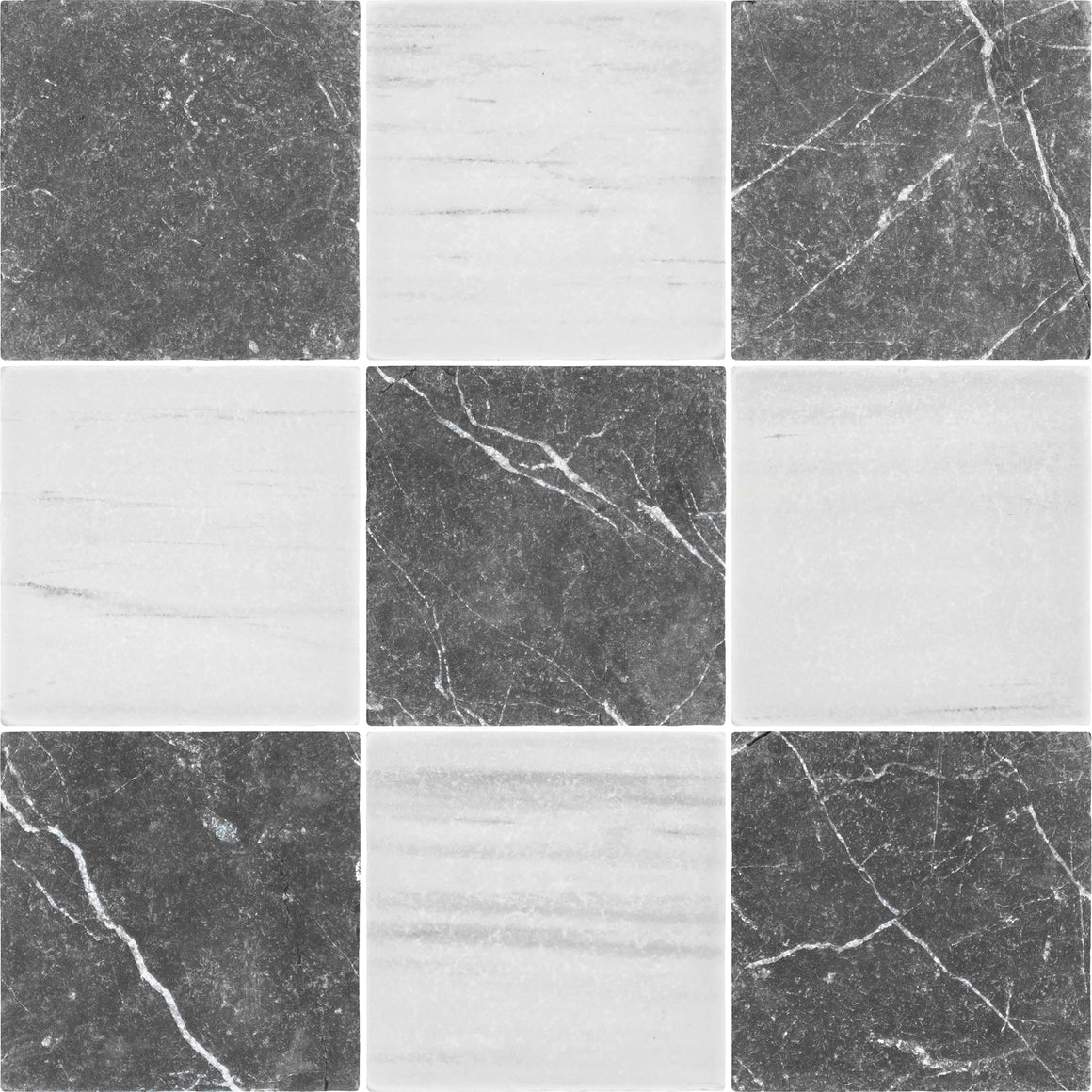 Black Marble & Dolomite 4" Checkerboard Tumbled