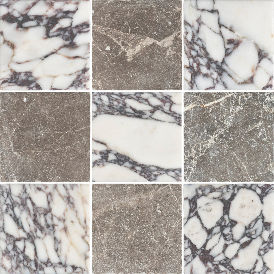 Bianco Violetta & Espresso 4" Checkerboard Tumbled