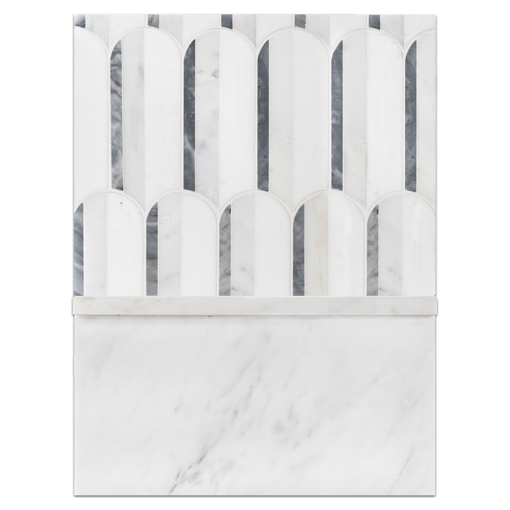 - AM6931H - Bardiglio Nuvolato, Pearl White & White Thassos Tri-Blend Wave Mosaic Honed