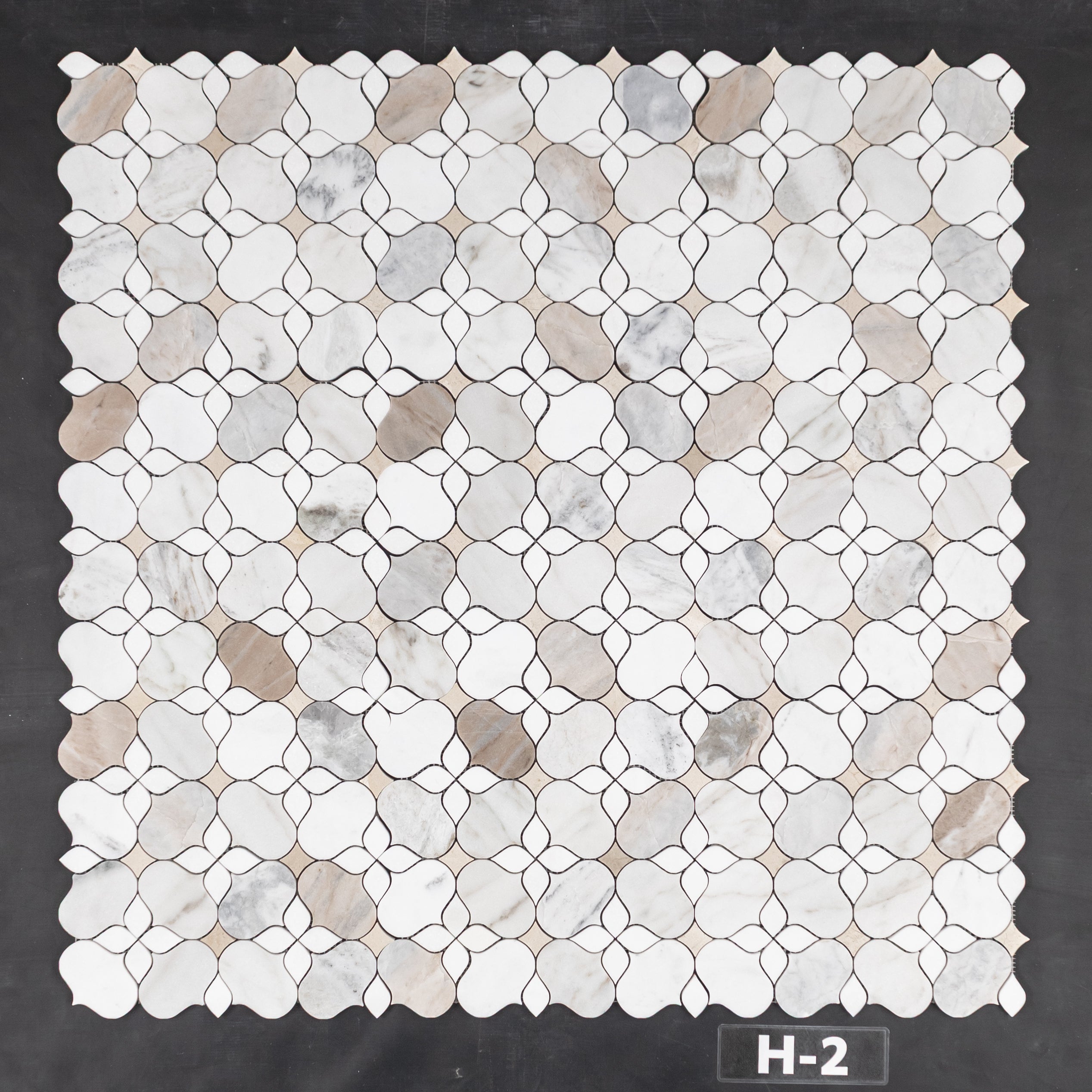 Bianco Oro Silhouette with White Thassos and Crema Marfil Mosaic Honed