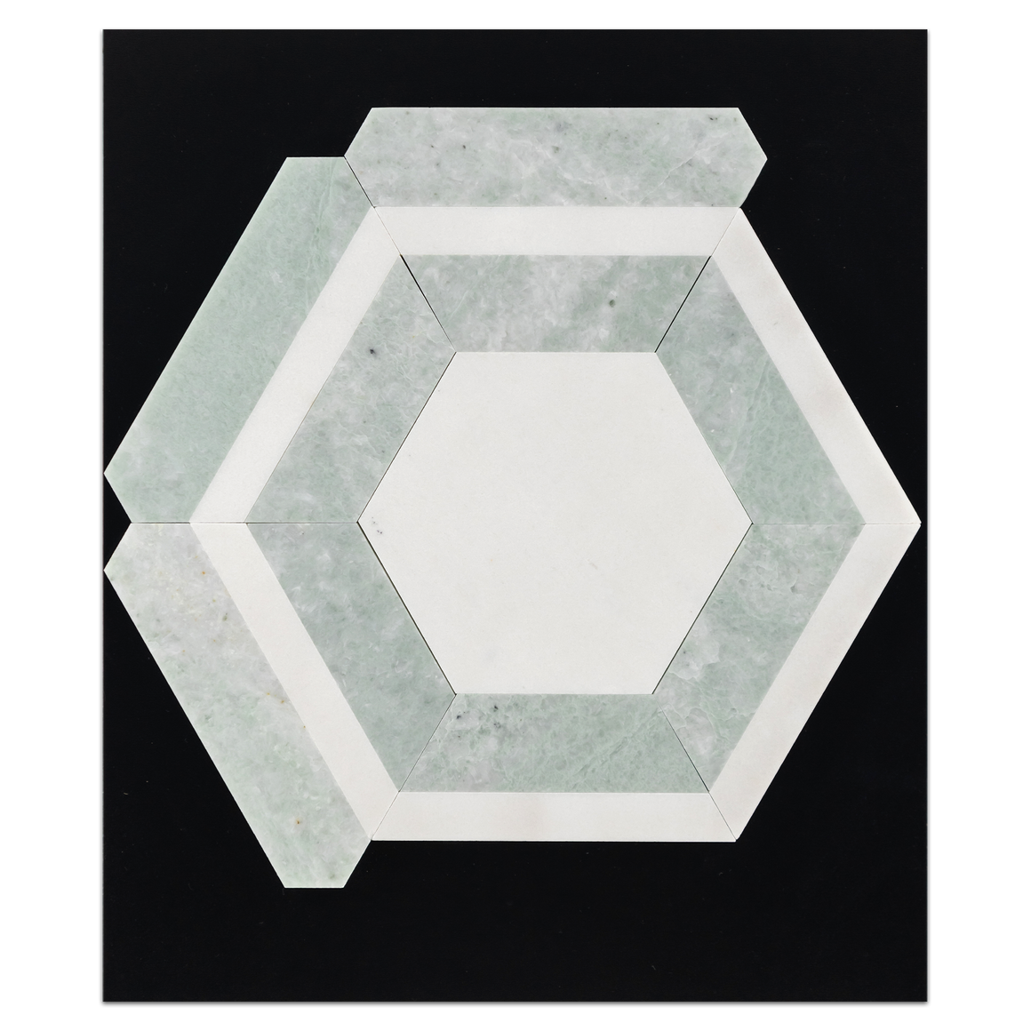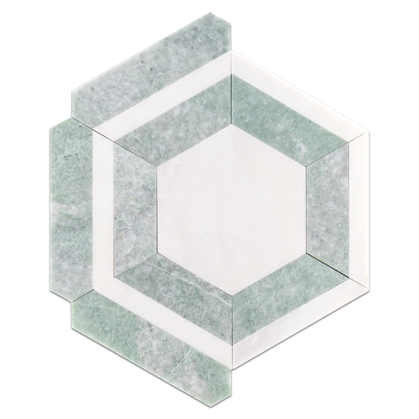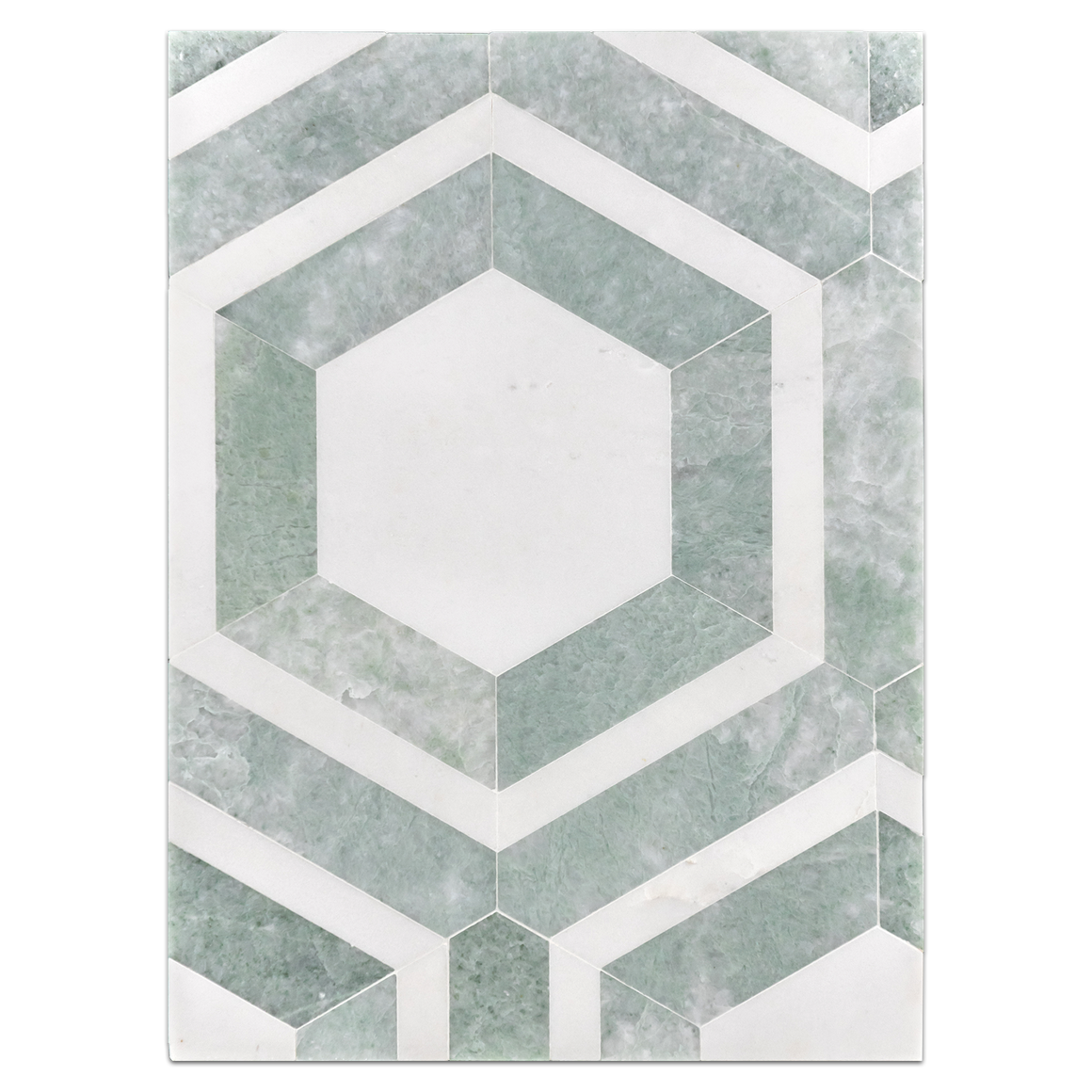 White Absolute Honeycomb with Ming Green Mosaic Honed