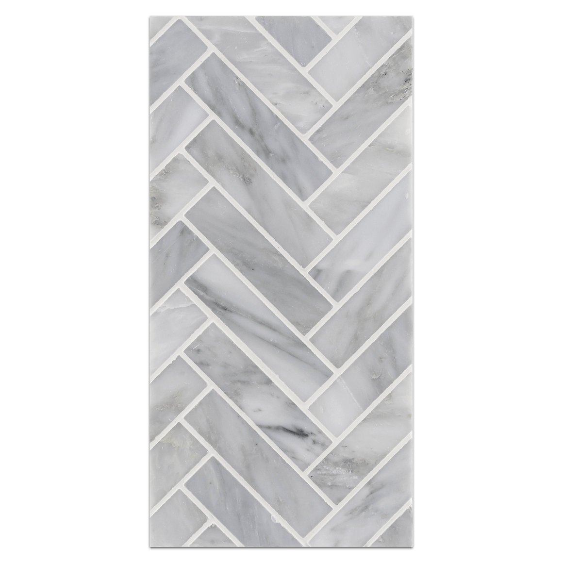 Mystic Gray 1" x 4" Herringbone Mosaic Honed
