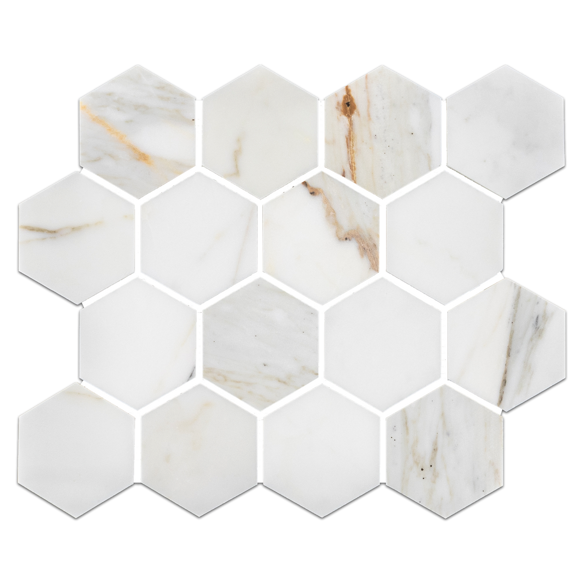 AM9080H - Calacatta Gold 3" Hexagon Mosaic Honed