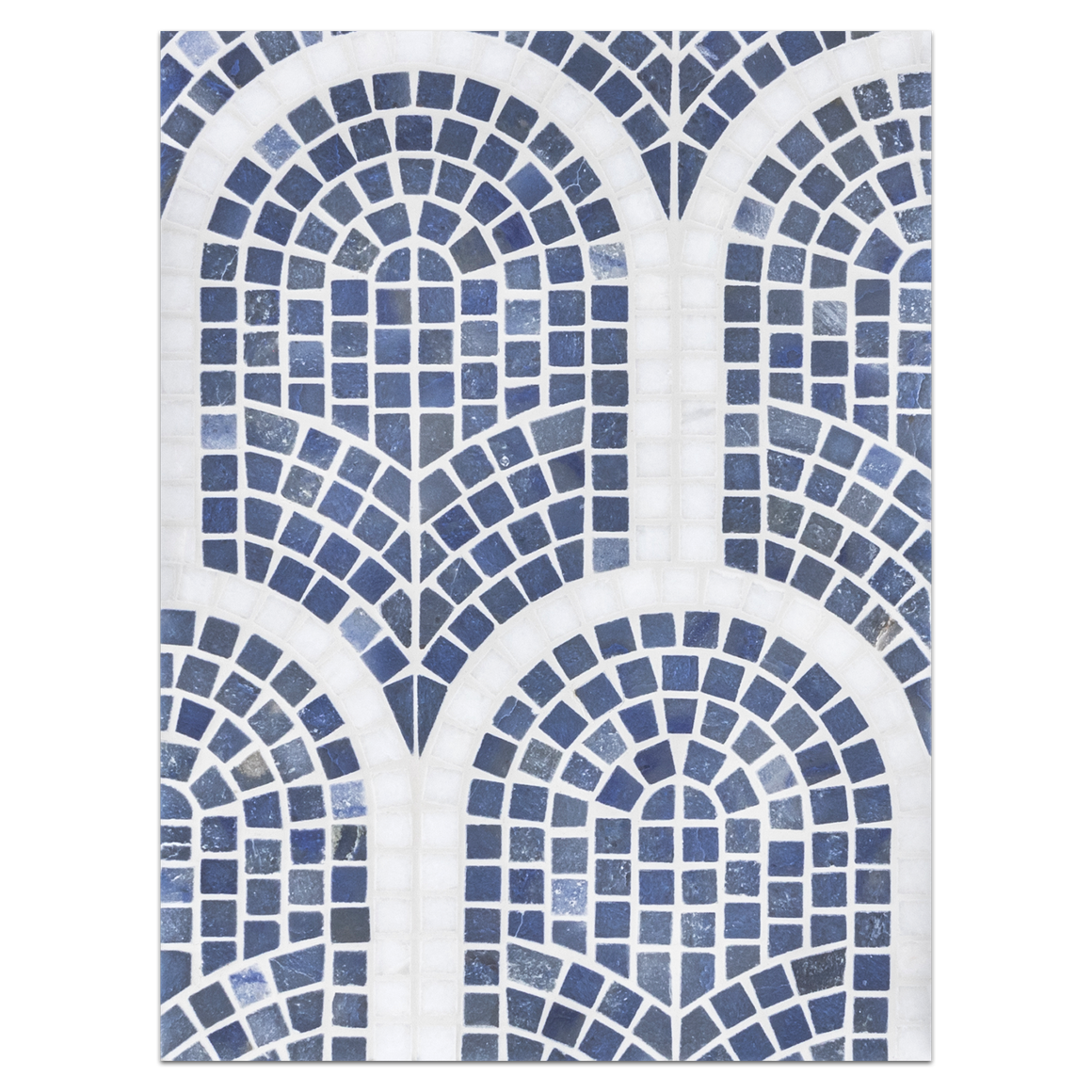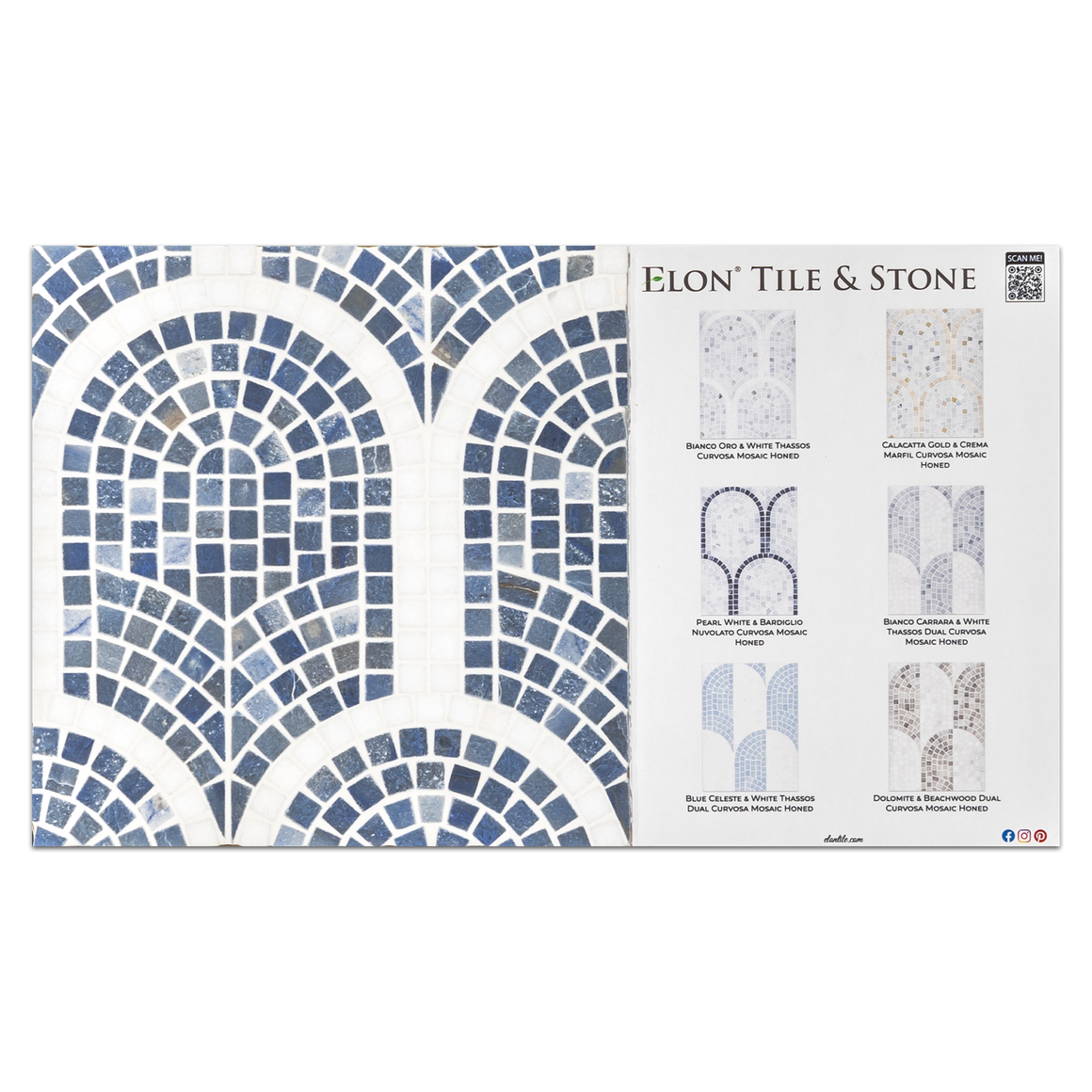 White Thassos & Azul Macauba Curvosa Mosaic Honed
