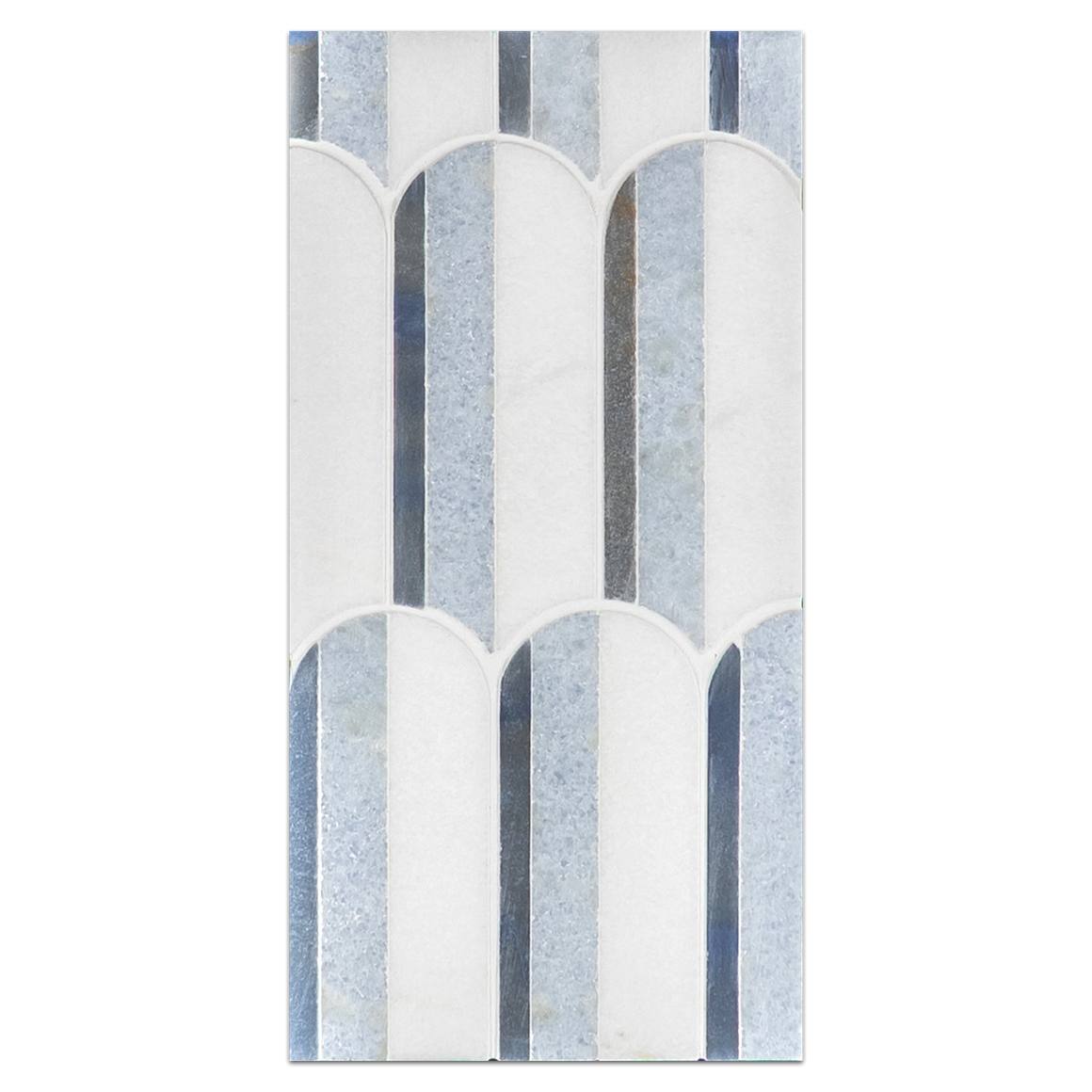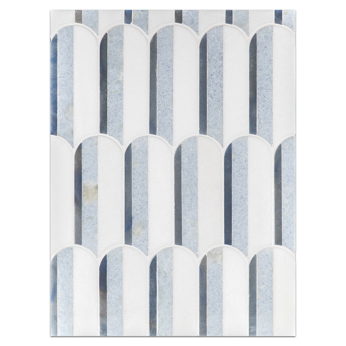 Azul Macauba, Blue Celeste & White Thassos Tri-Blend Wave Mosaic Polished