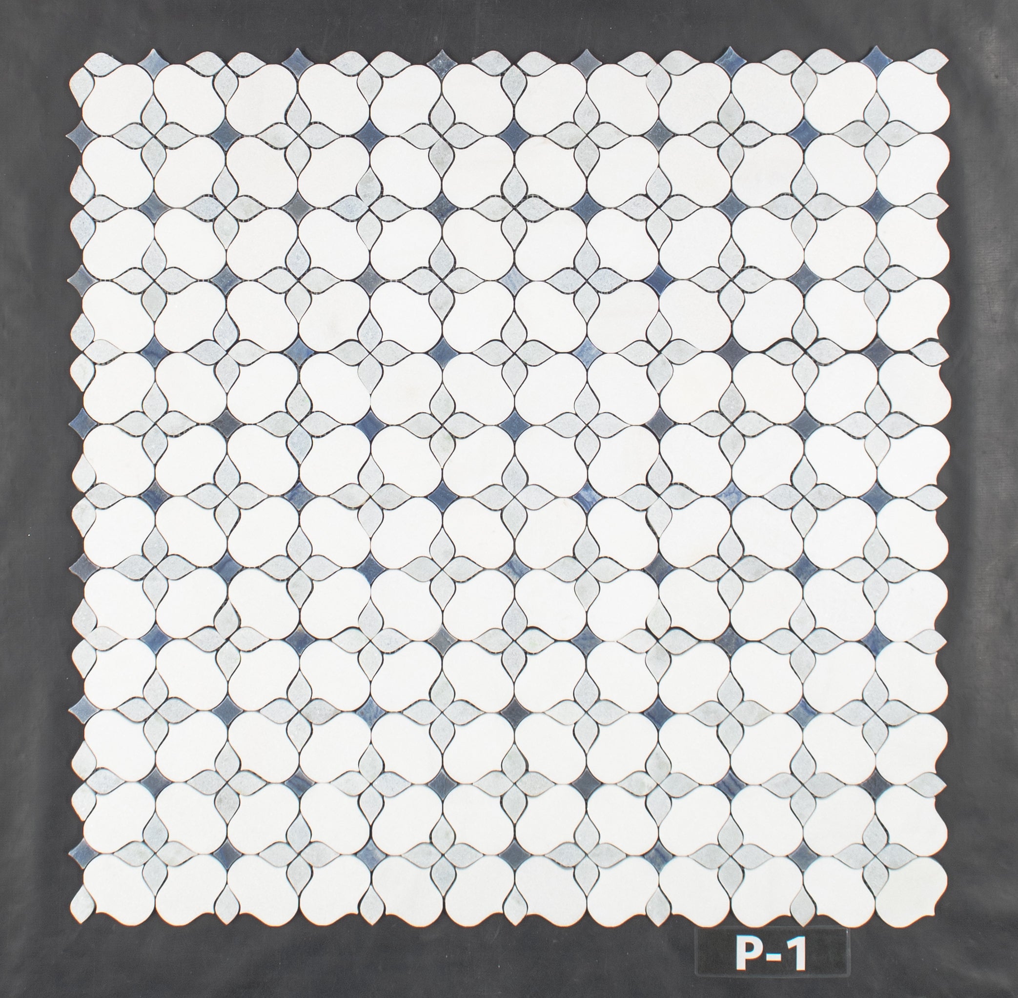 White Thassos Silhouette with Blue Celeste and Azul Macauba Mosaic Polished