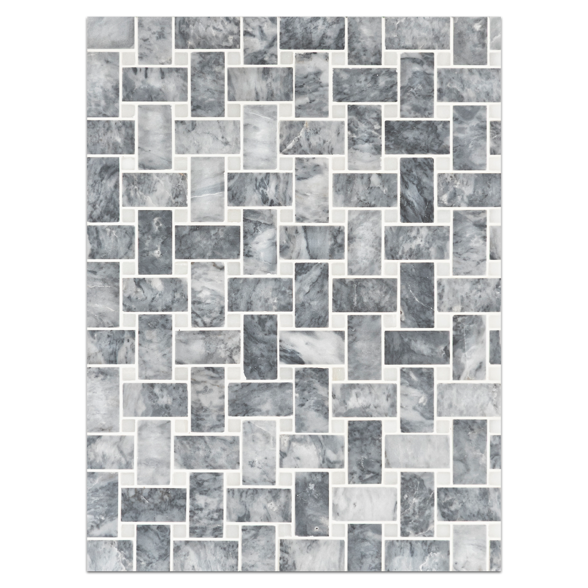 Pacific Gray Basketweave with 3/8" White Absolute Dot Mosaic Honed