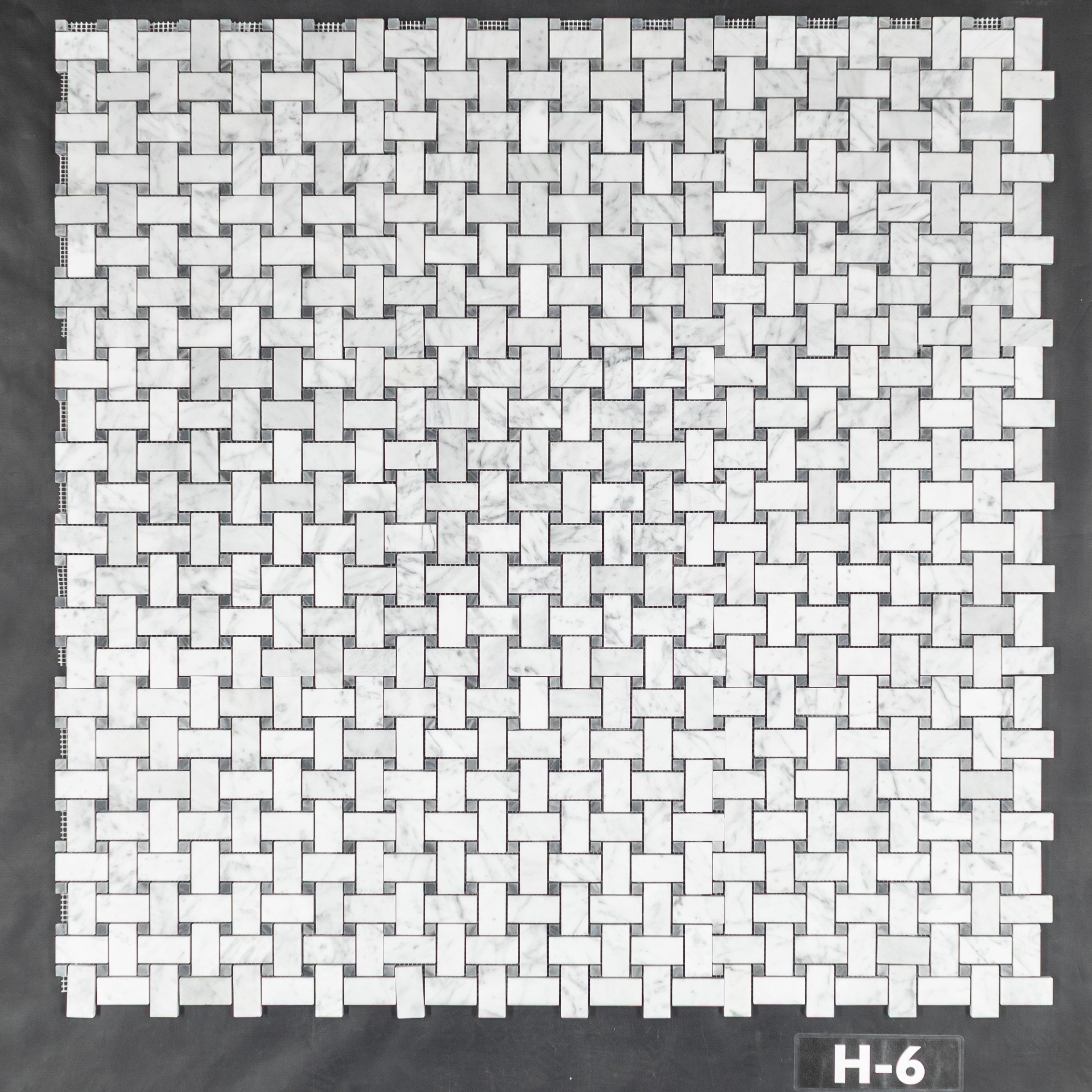 Bianco Carrara Basketweave with 3/8" Pacific Gray Dot Mosaic Honed
