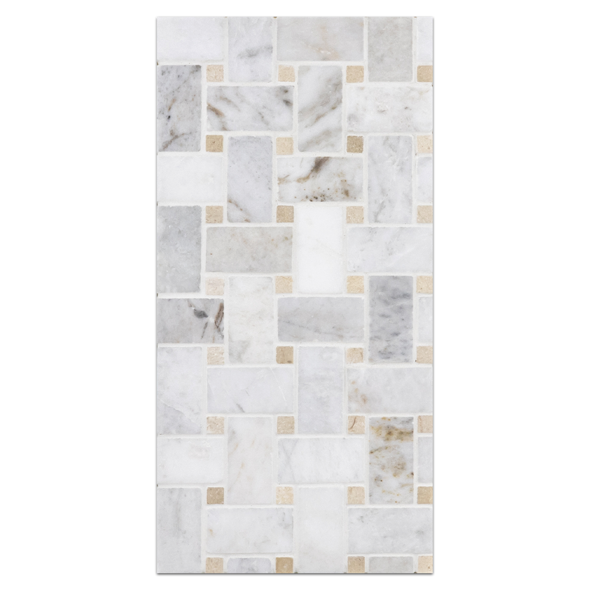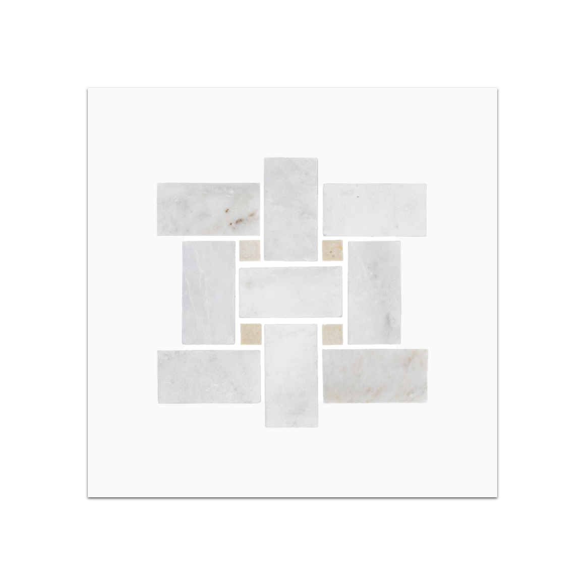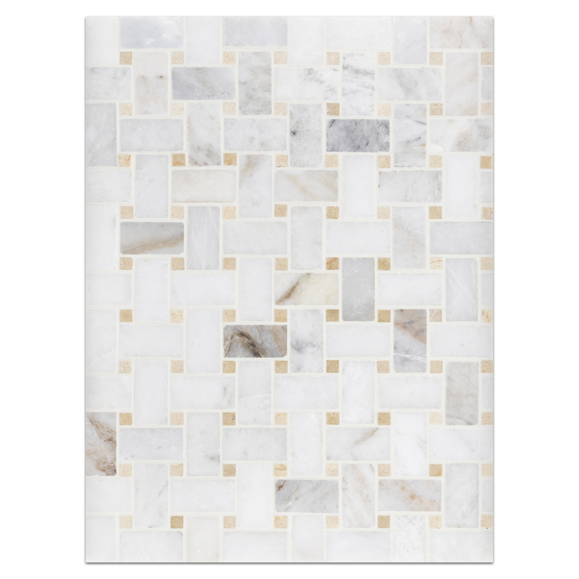 Bianco Oro Basketweave with Crema Marfil Dot Mosaic Honed