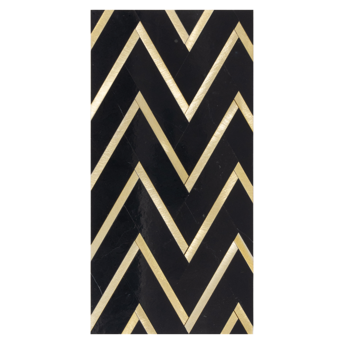 Black Herringbone with Gold Aluminum Mosaic Polished