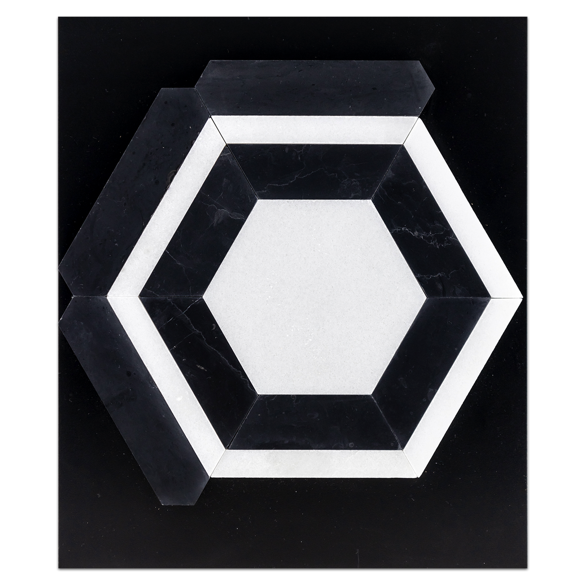 White Absolute Honeycomb with Black Marble Mosaic Honed