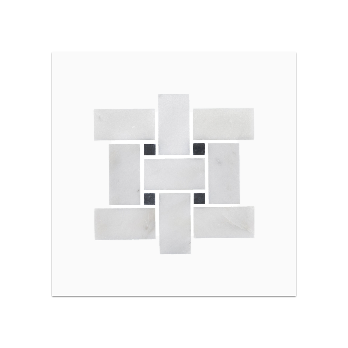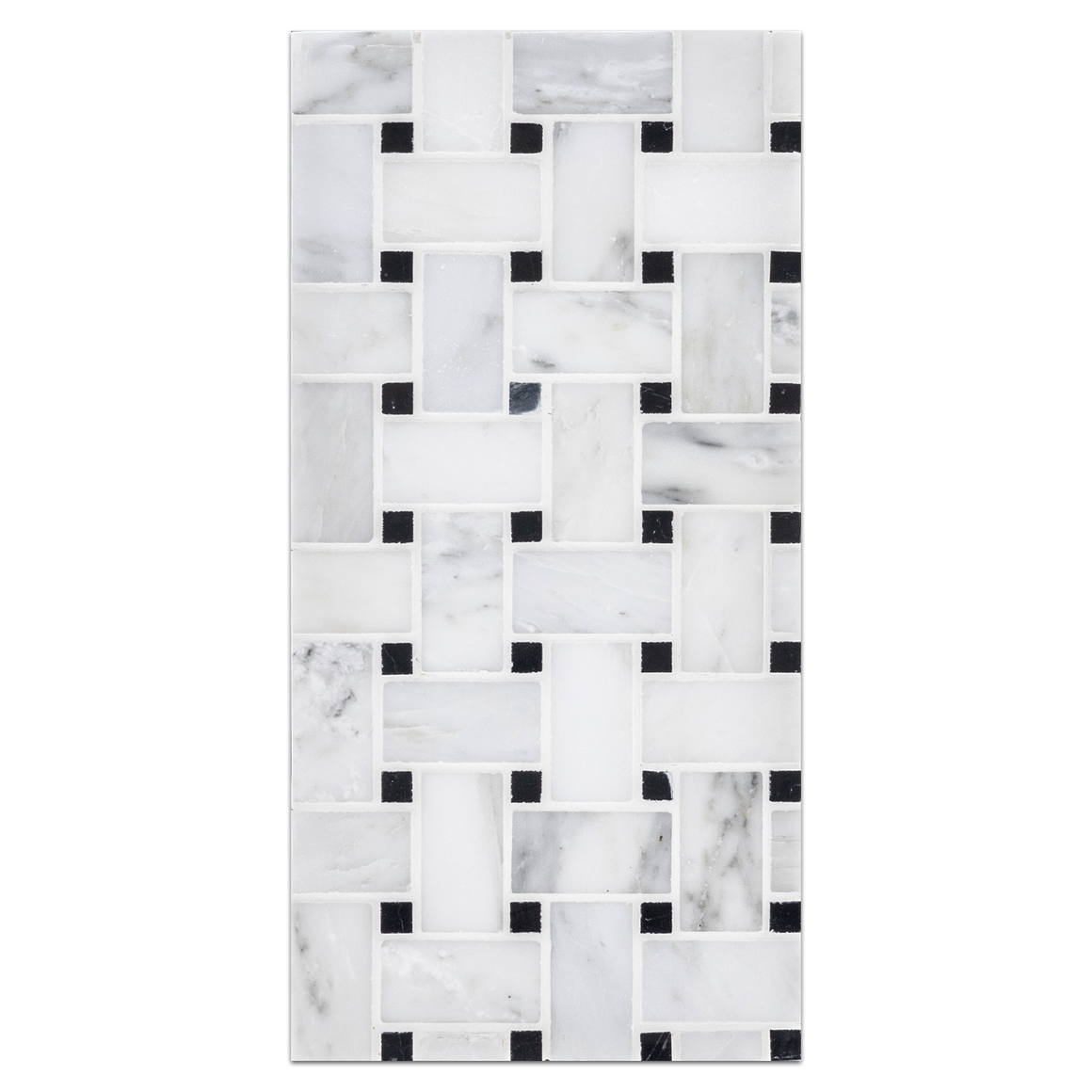 Pearl White Basketweave with 3/8" Black Dot Mosaic Honed