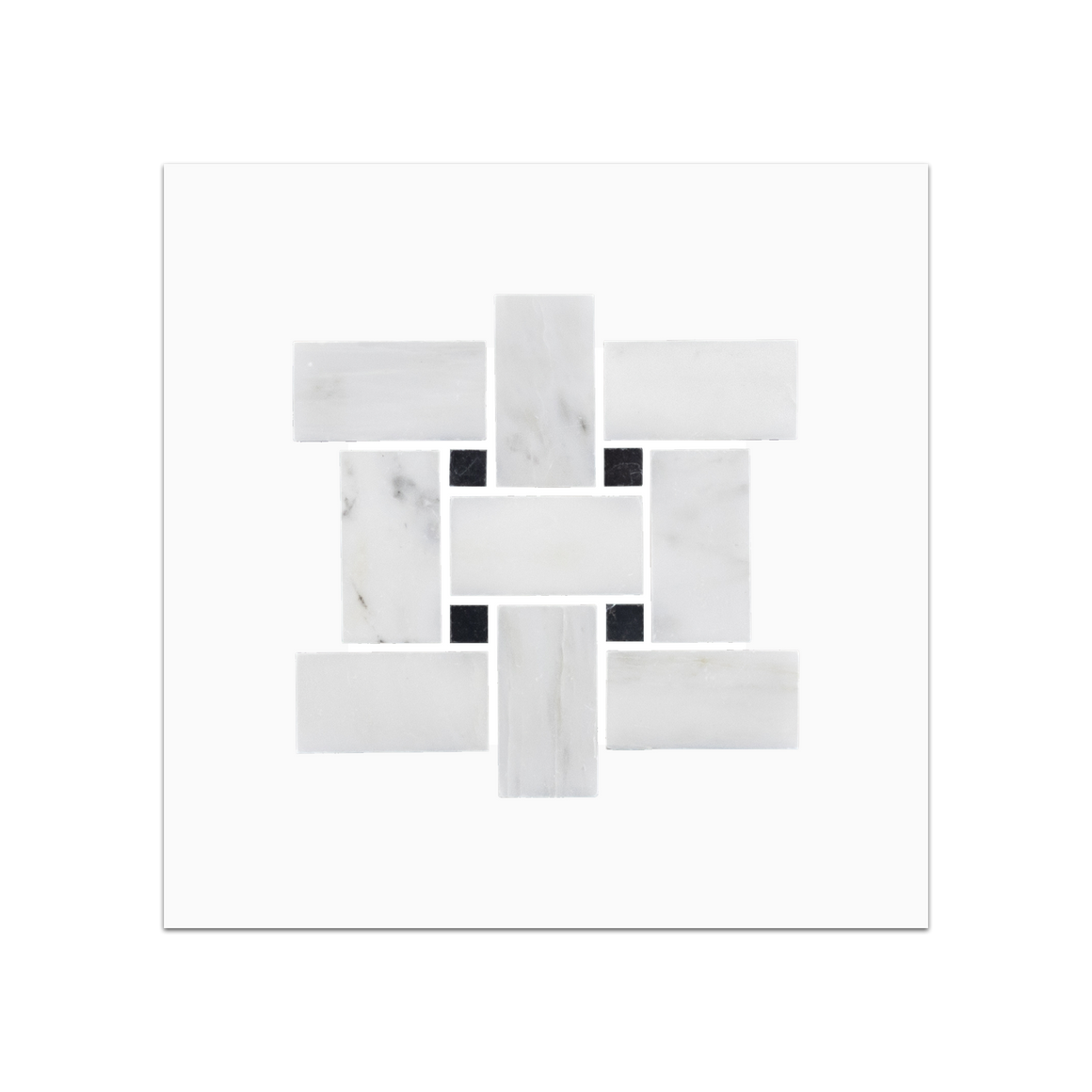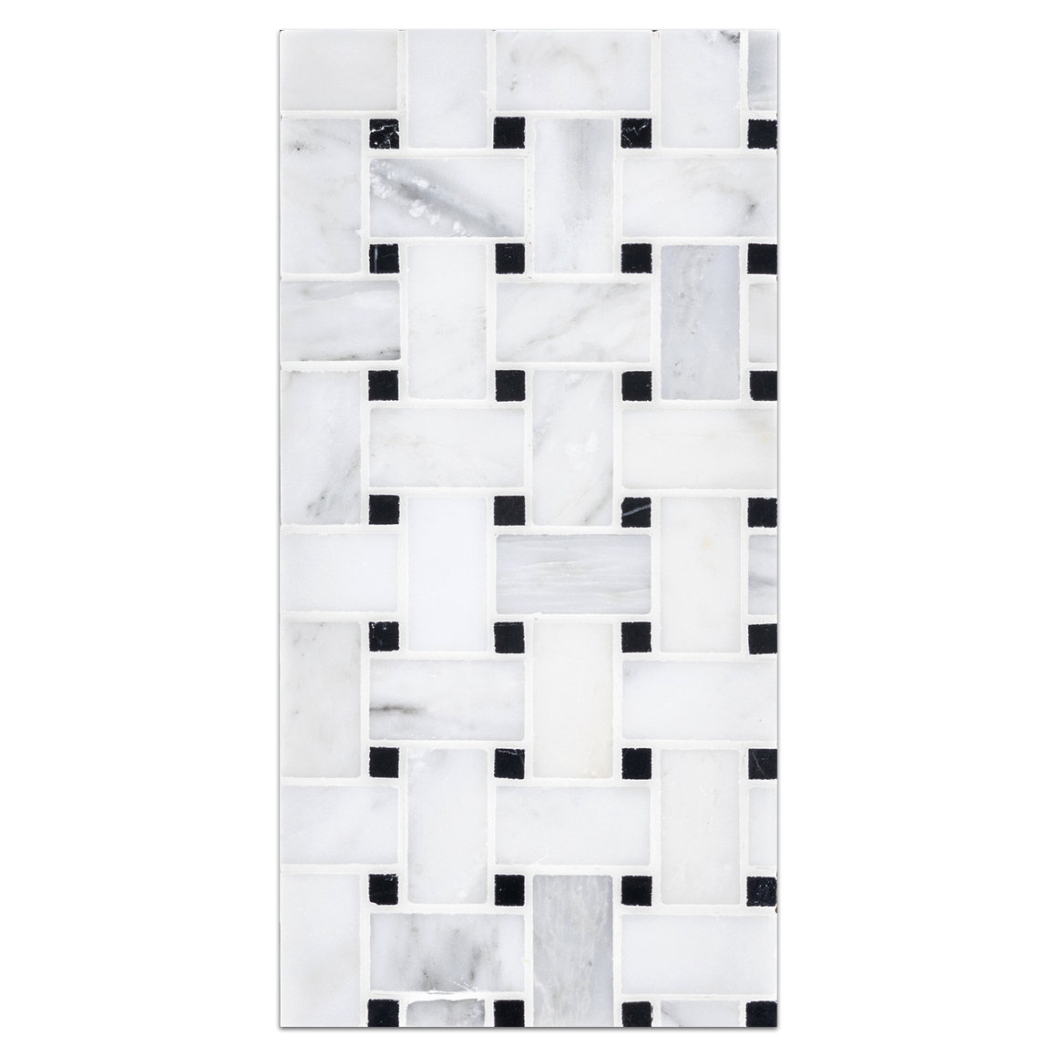 Pearl White Basketweave with 3/8" Black Dot Mosaic Polished