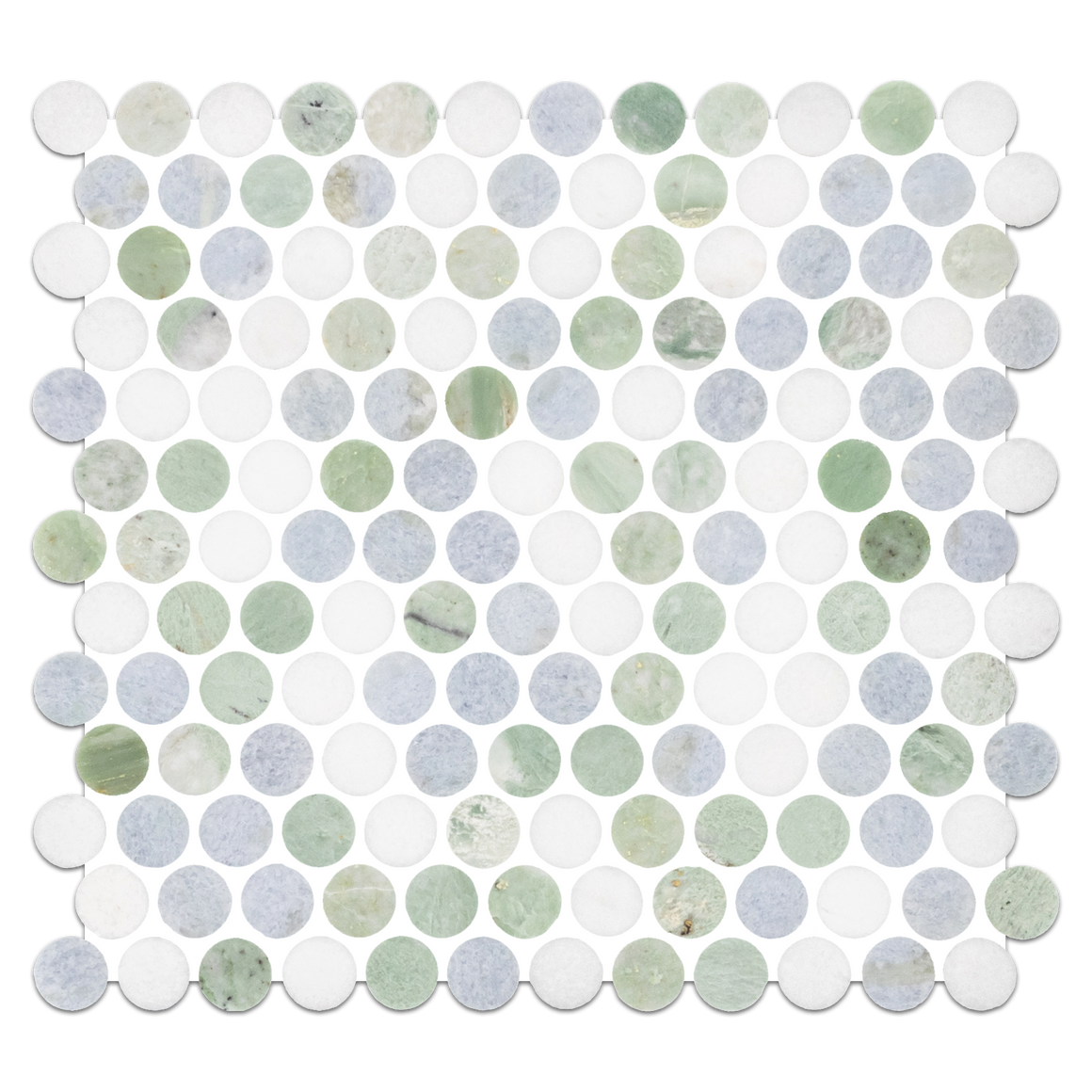 SM1008P - TriBlend (Blue Celeste, White Thassos, Ming Green) 1" Rounds Mosaic Polished