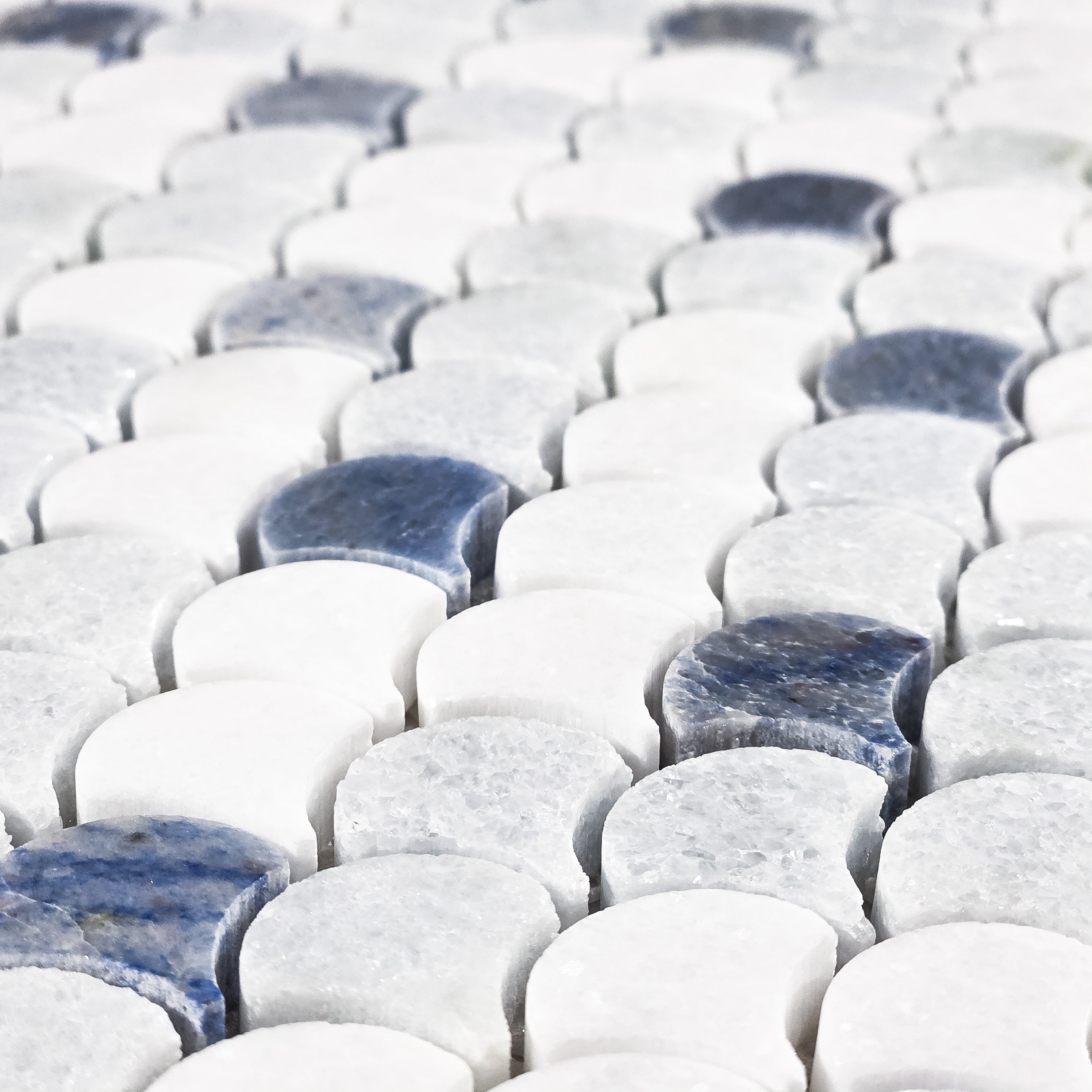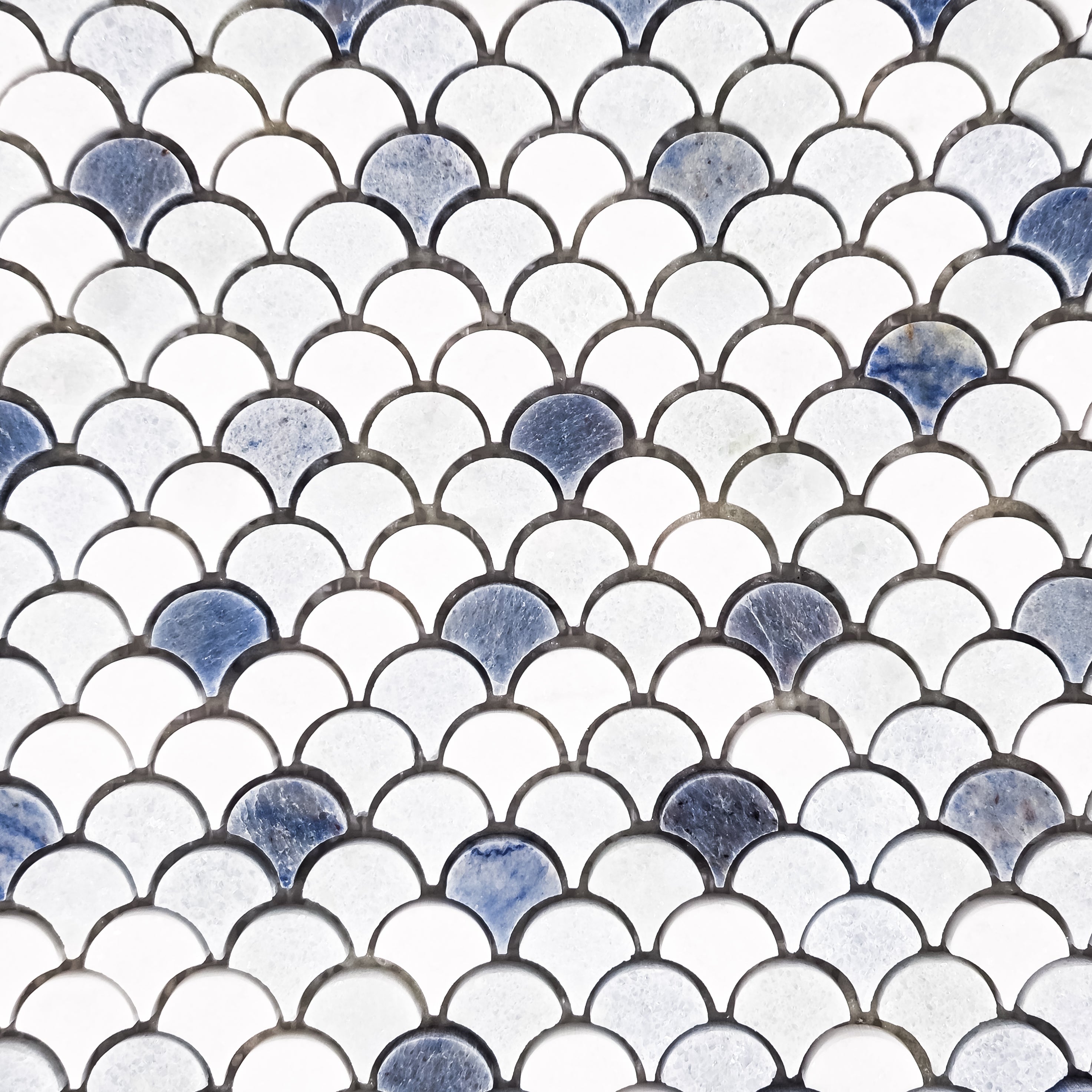 Tri-Blend Fan (Blue Celeste, Azul Macauba, & White Thassos) Mosaic Polished