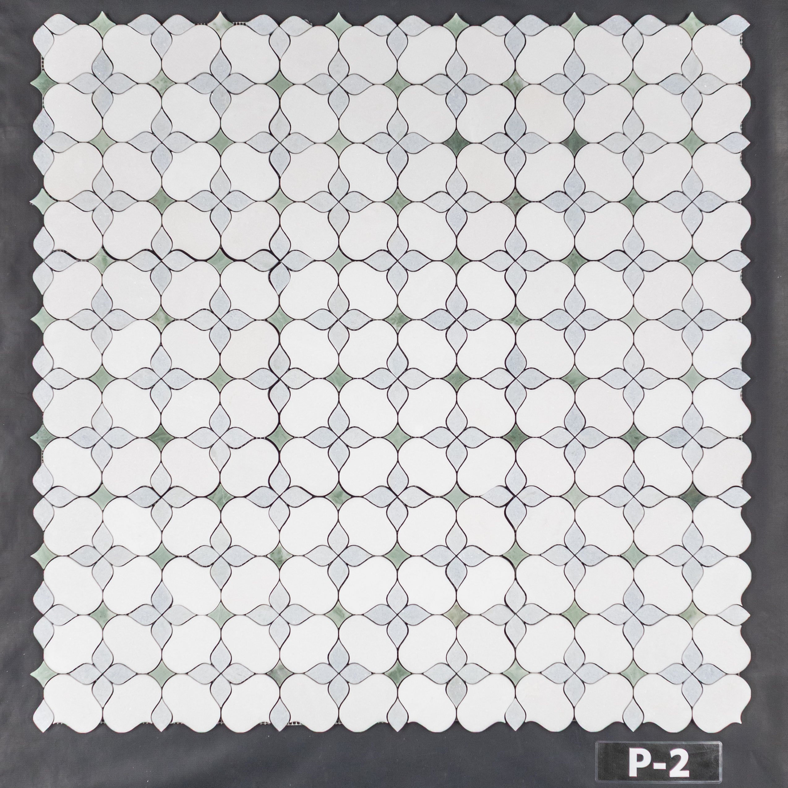 White Thassos Silhouette with Blue Celeste and Emerald Green Mosaic Polished