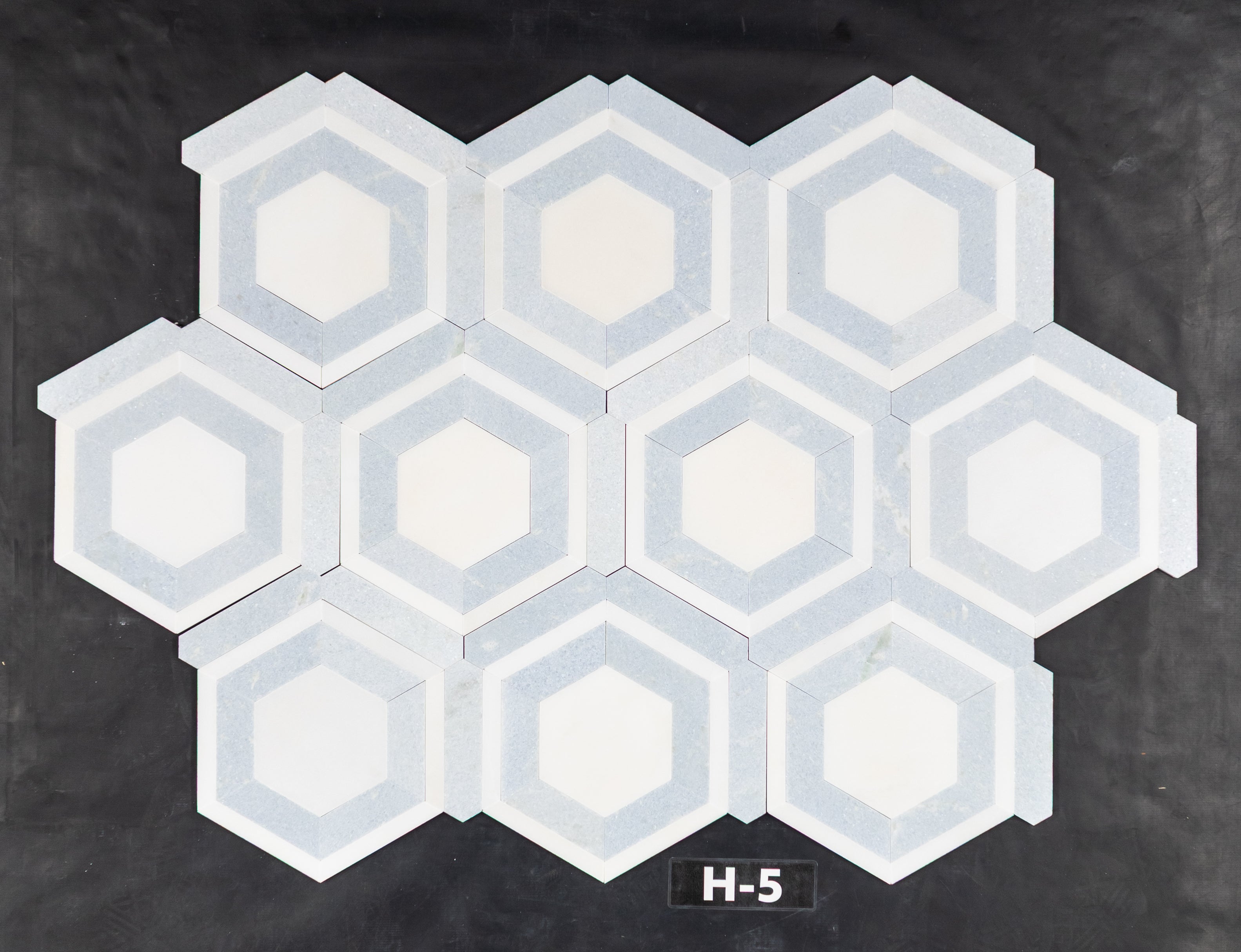 White Absolute Honeycomb with Blue Celeste Mosaic Honed