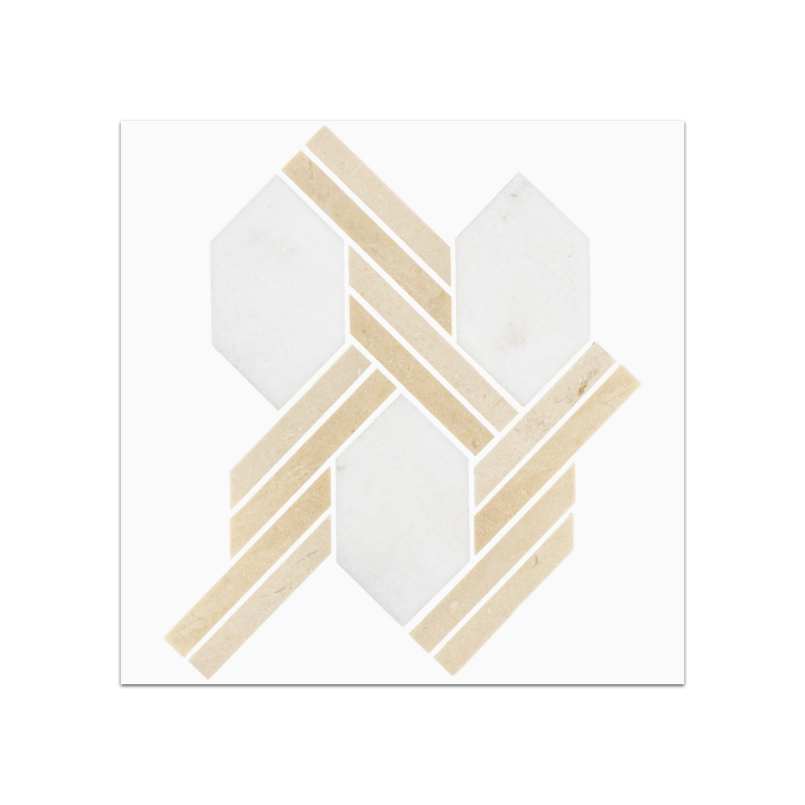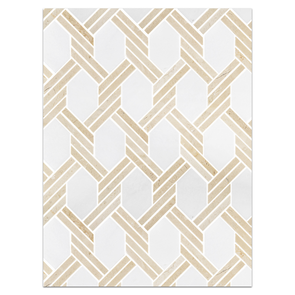 White Thassos Captiva with Crema Marfil Mosaic Polished