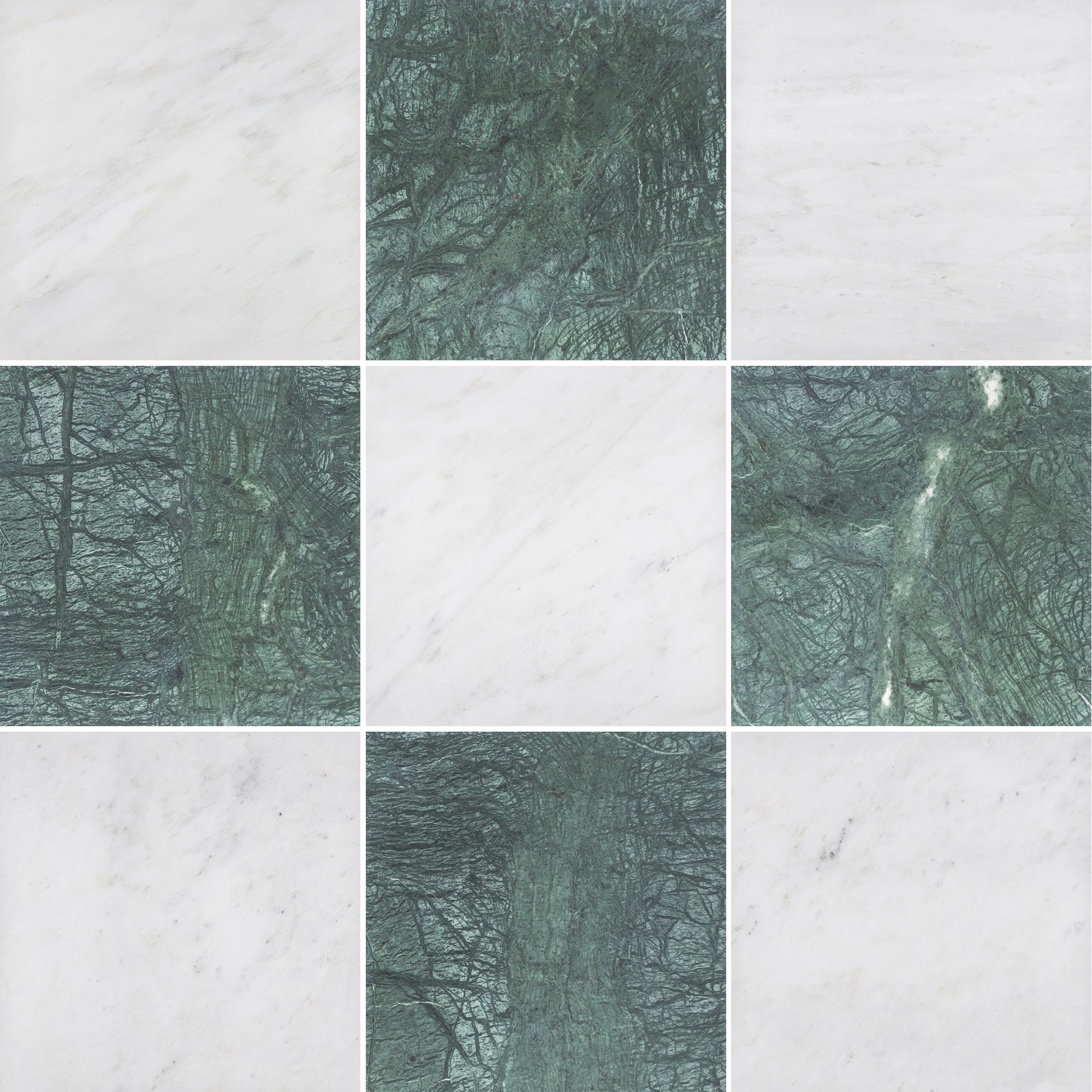 Pearl White & Notte Verde 12" Checkerboard Honed