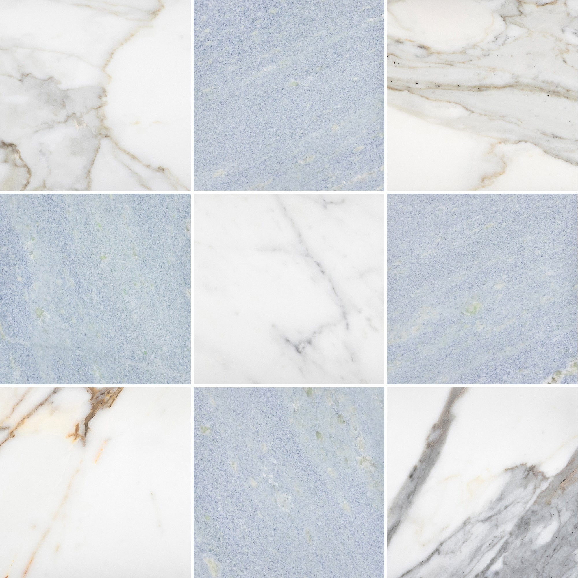 Calacatta Gold & Blue Celeste 12" Checkerboard Honed