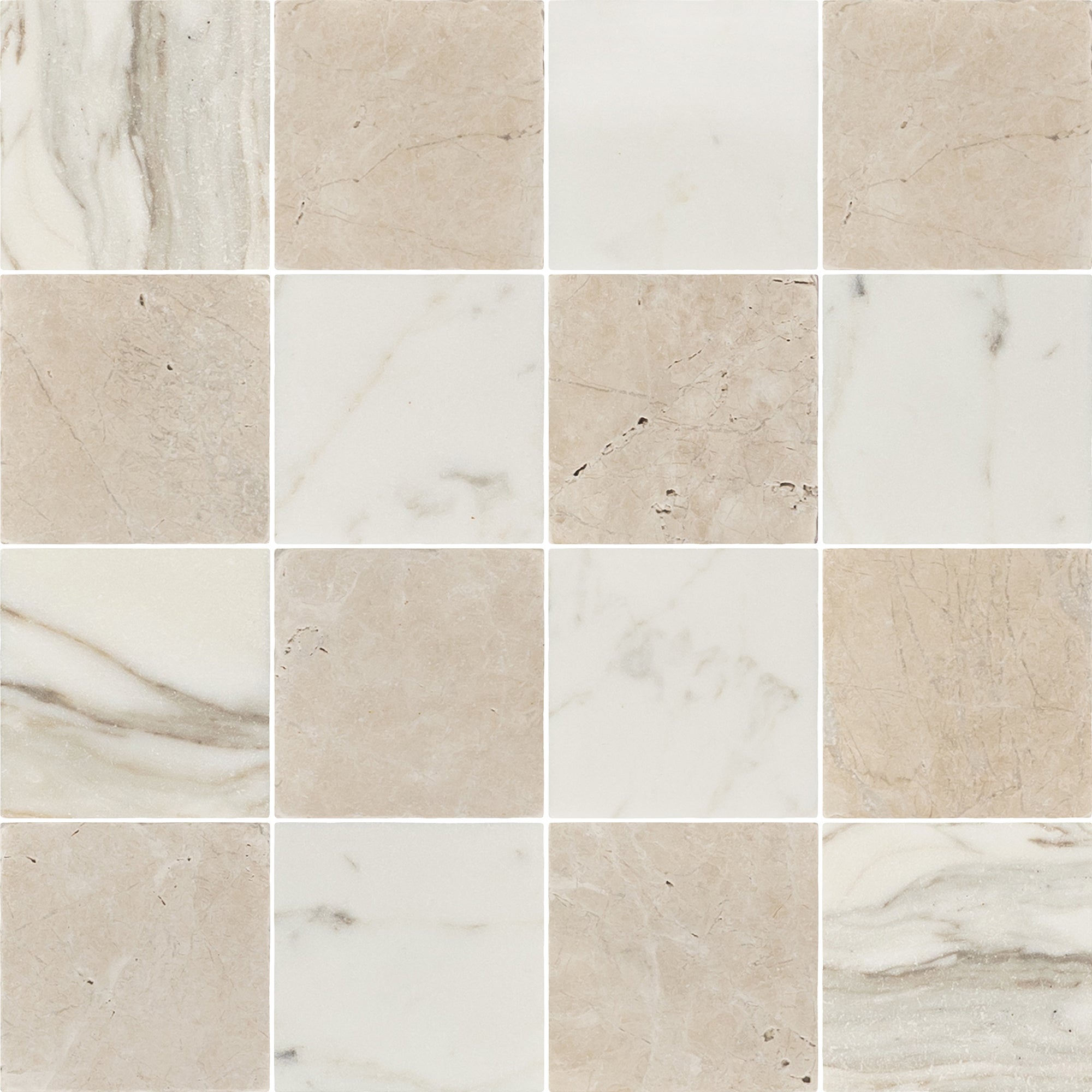 Calacatta Gold & Vanilla Royale 4" Checkerboard Tumbled