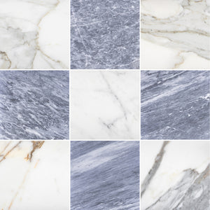 Calacatta Gold & Blue Celeste 12" Checkerboard Honed
