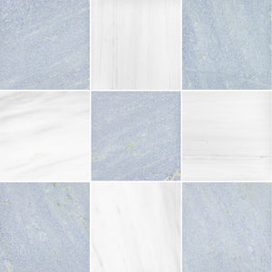 Blue Celeste & Bianco Oro 12" Checkerboard Honed
