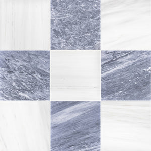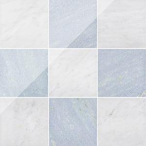 Bianco Carrara & Blue Celeste 12" Checkerboard Polished