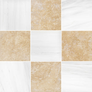 Bianco Oro & Light Ivory 12" Checkerboard Honed