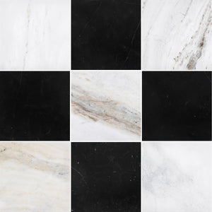 Select Dolomite & Black Marble 12" Checkerboard Honed
