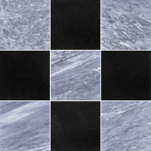 Bardiglio Nuvolato & Black Marble 12" Checkerboard Honed