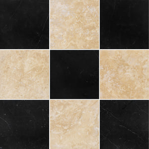 Black Marble & Light Ivory 12" Checkerboard Honed