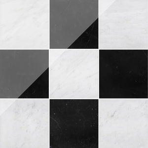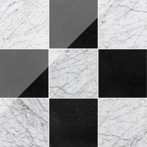 Bianco Carrara & Black Marble 12" Checkerboard Polished