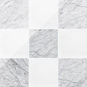Pearl White & Bianco Carrara 12" Checkerboard Polished