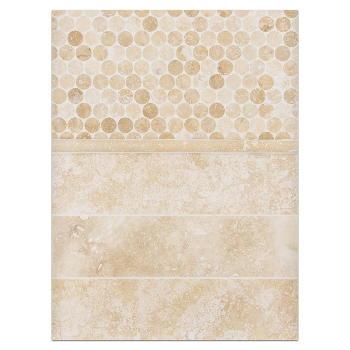 Cross-Cut Light Ivory Travertine 1" Rounds Mosaic Honed & Filled