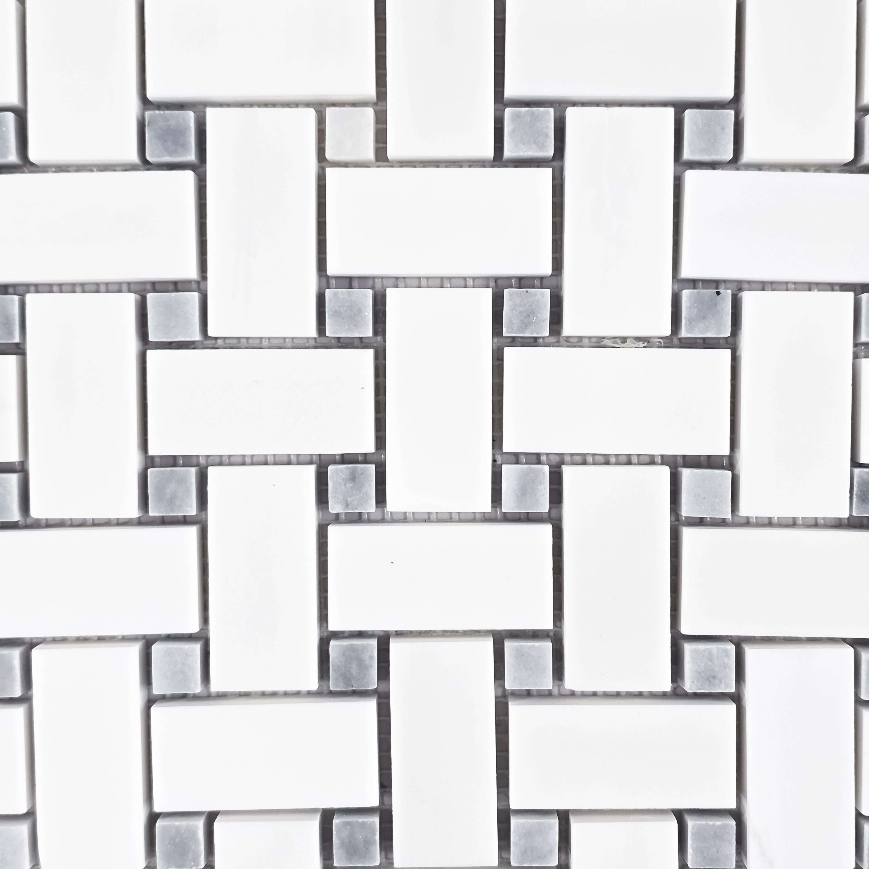Dolomite Basketweave with 3/8" Bardiglio Dot Mosaic Honed