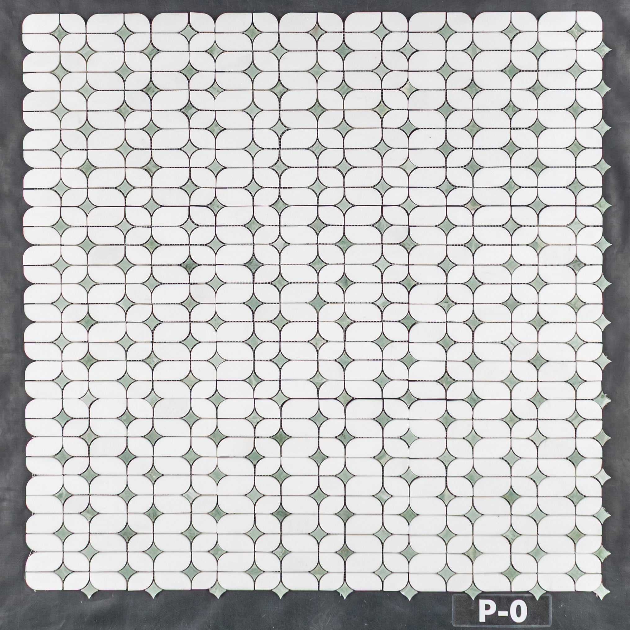 White Thassos Starlight with Emerald Green Star Mosaic Polished