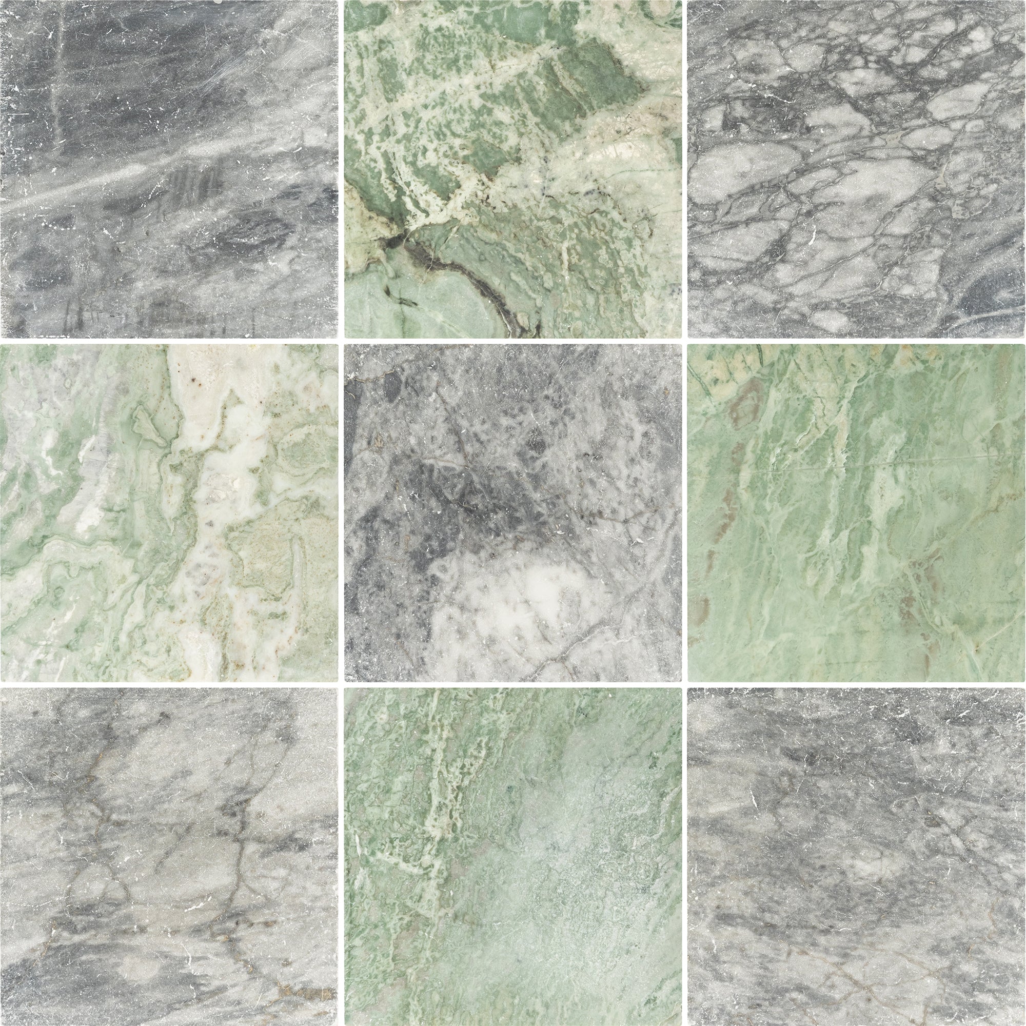 Bardiglio Nuvolato & Emerald Green 10" Checkerboard Tumbled