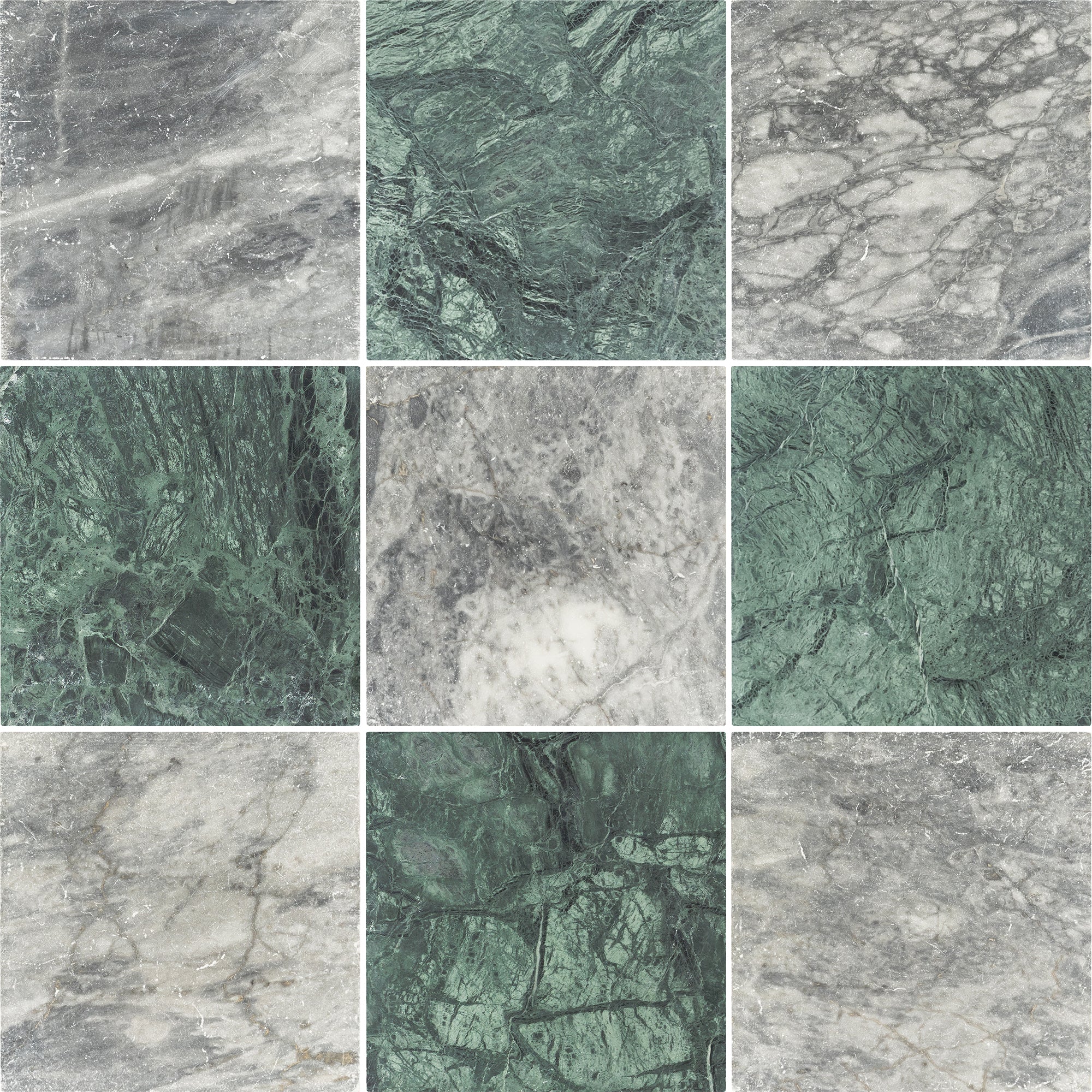 Bardiglio Nuvolato & Notte Verde 10" Checkerboard Tumbled