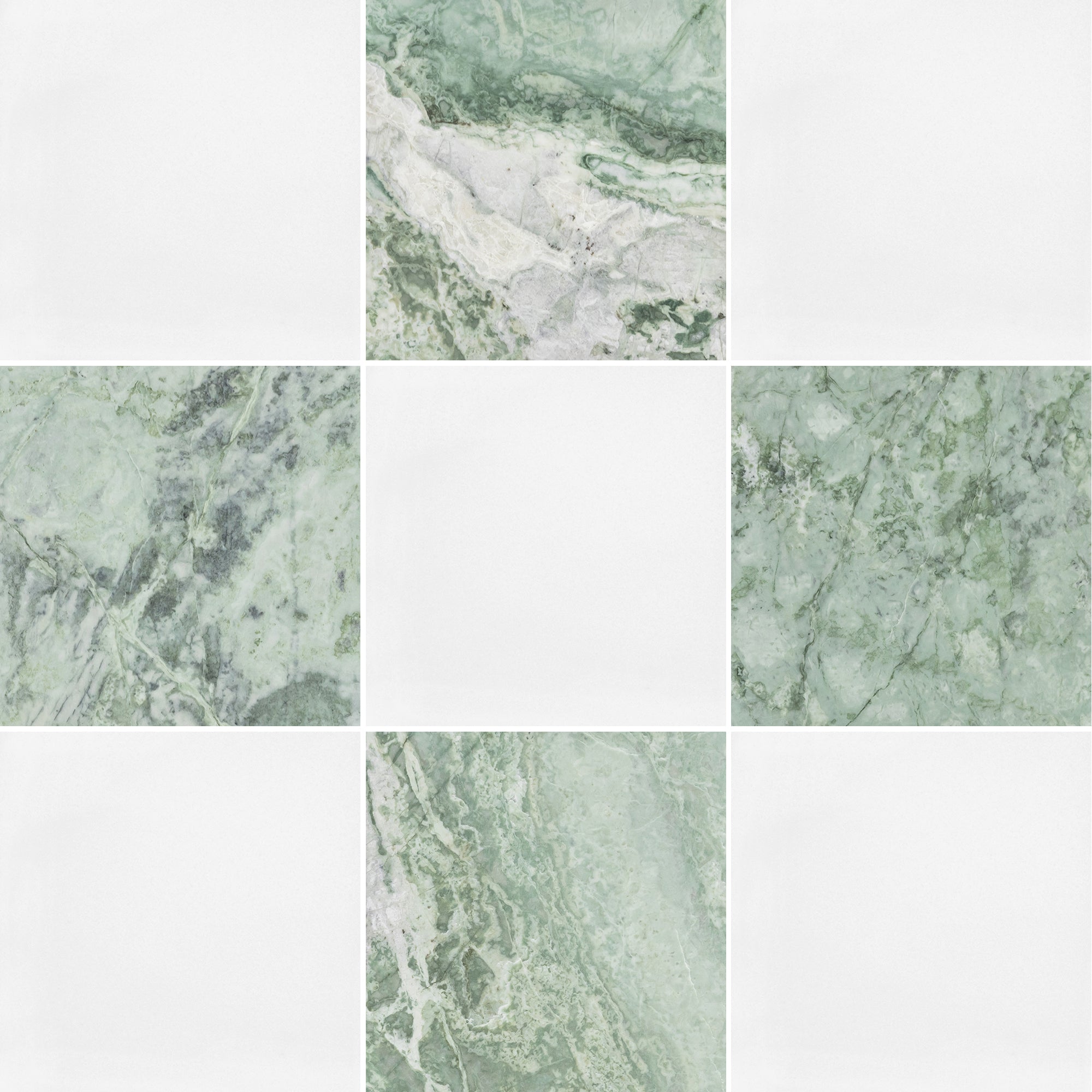 White Thassos & Emerald Green 12" Checkerboard Honed