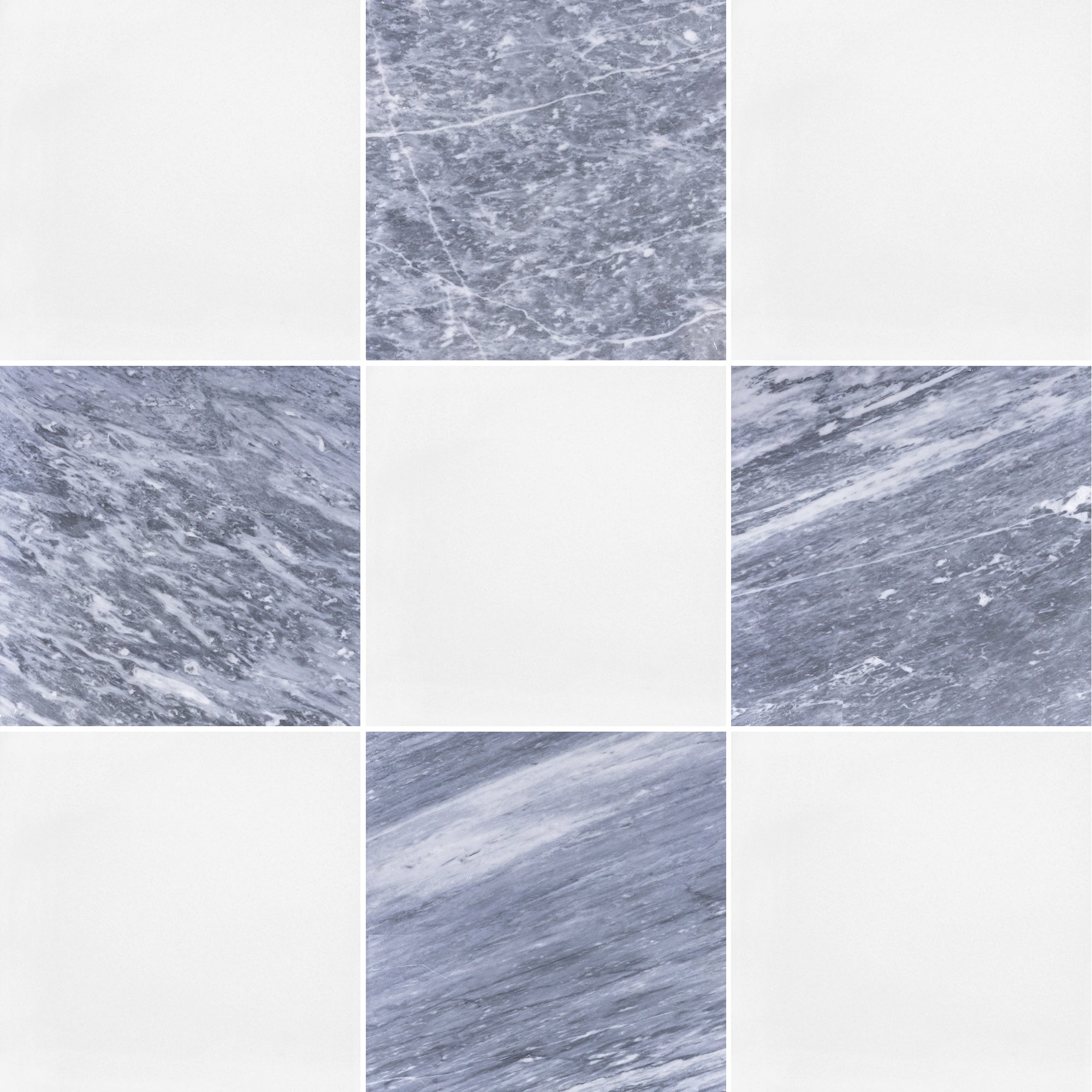 White Thassos & Bardiglio Nuvolato 12" Checkerboard Honed
