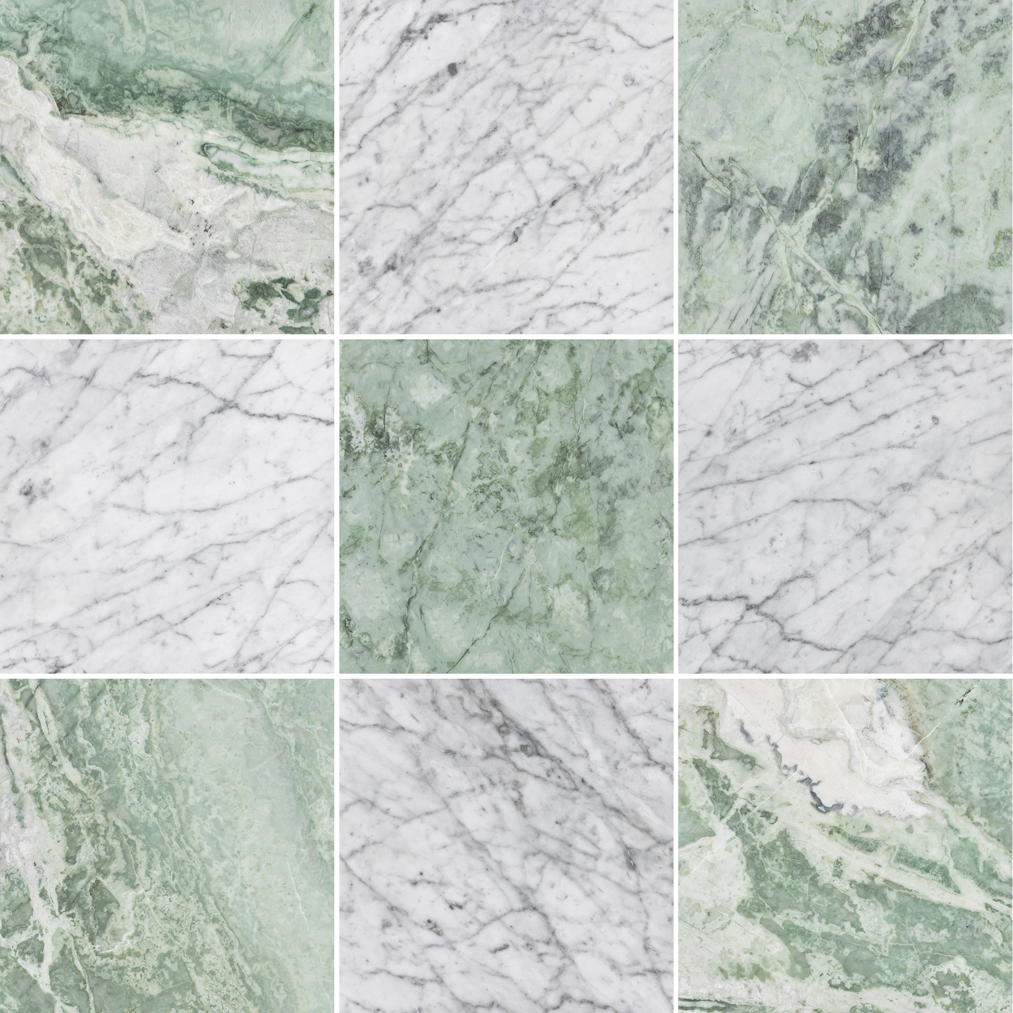 Emerald Green & Bianco Carrara 12" Checkerboard Honed