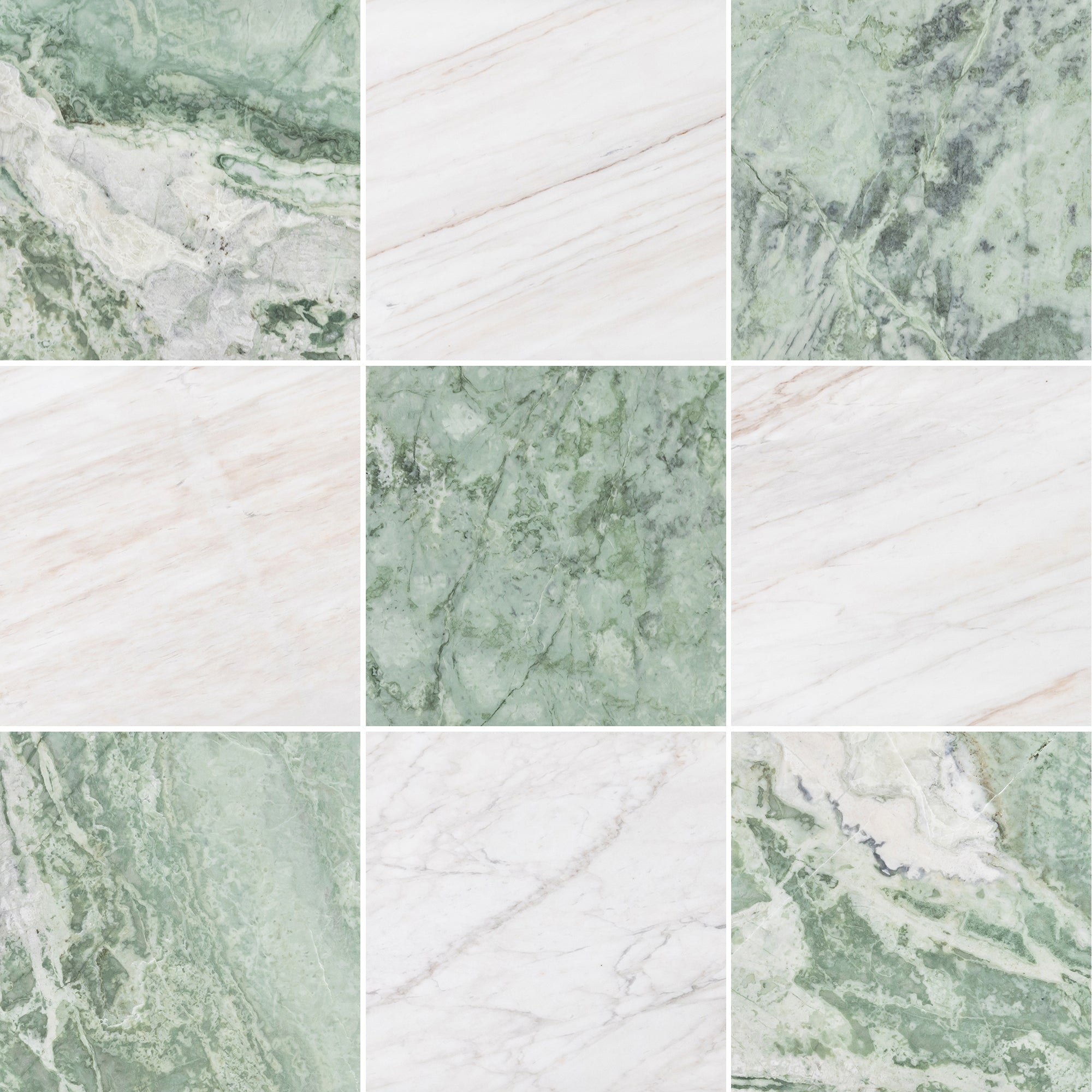 Emerald Green & Vena D'Oro 12" Checkerboard Honed