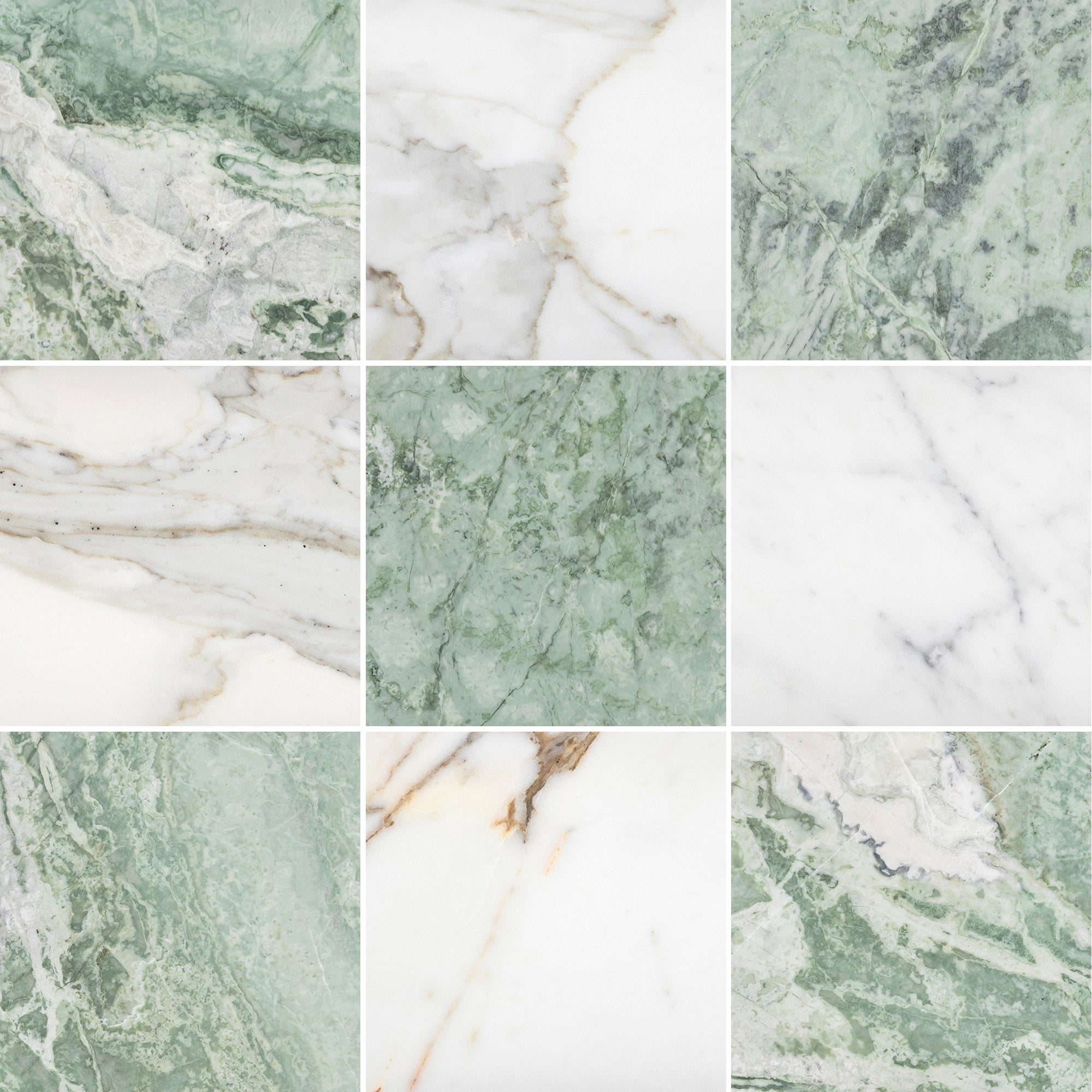 Emerald Green & Calacatta Gold 12" Checkerboard Honed