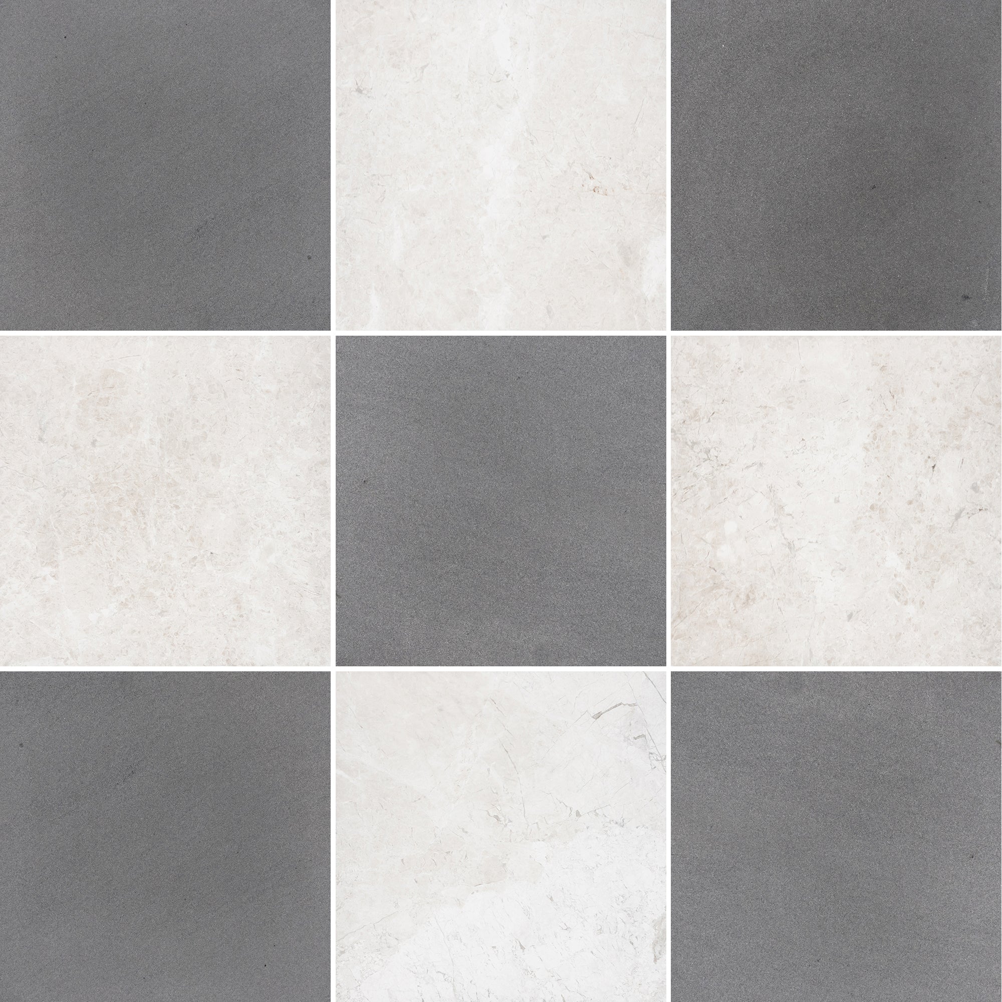 Grey Basalt & Alba Nova 12" Checkerboard Honed