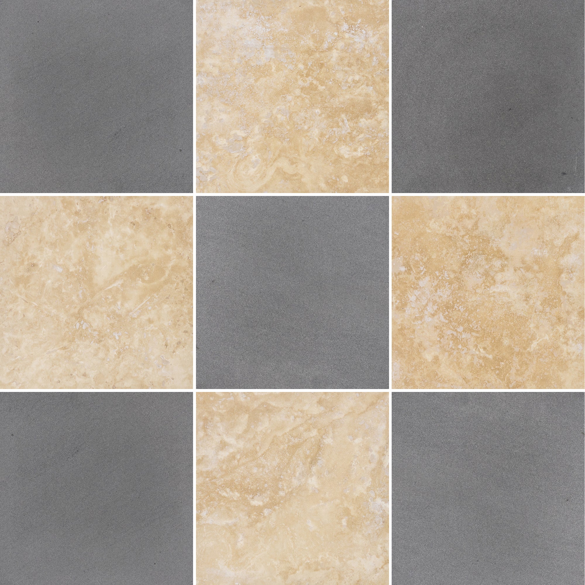 Grey Basalt & Light Ivory 12" Checkerboard Honed