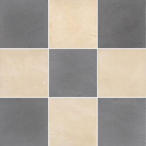 Grey Basalt & Crema Marfil 12" Checkerboard Honed
