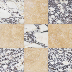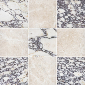 Bianco Violetta & Crema Marfil 12" Checkerboard Honed