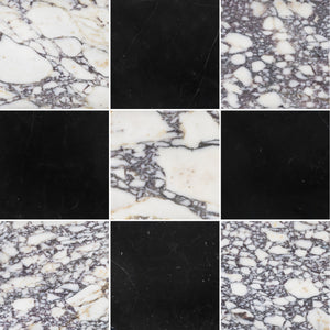 Bianco Violetta & Black Marble 12" Checkerboard Honed